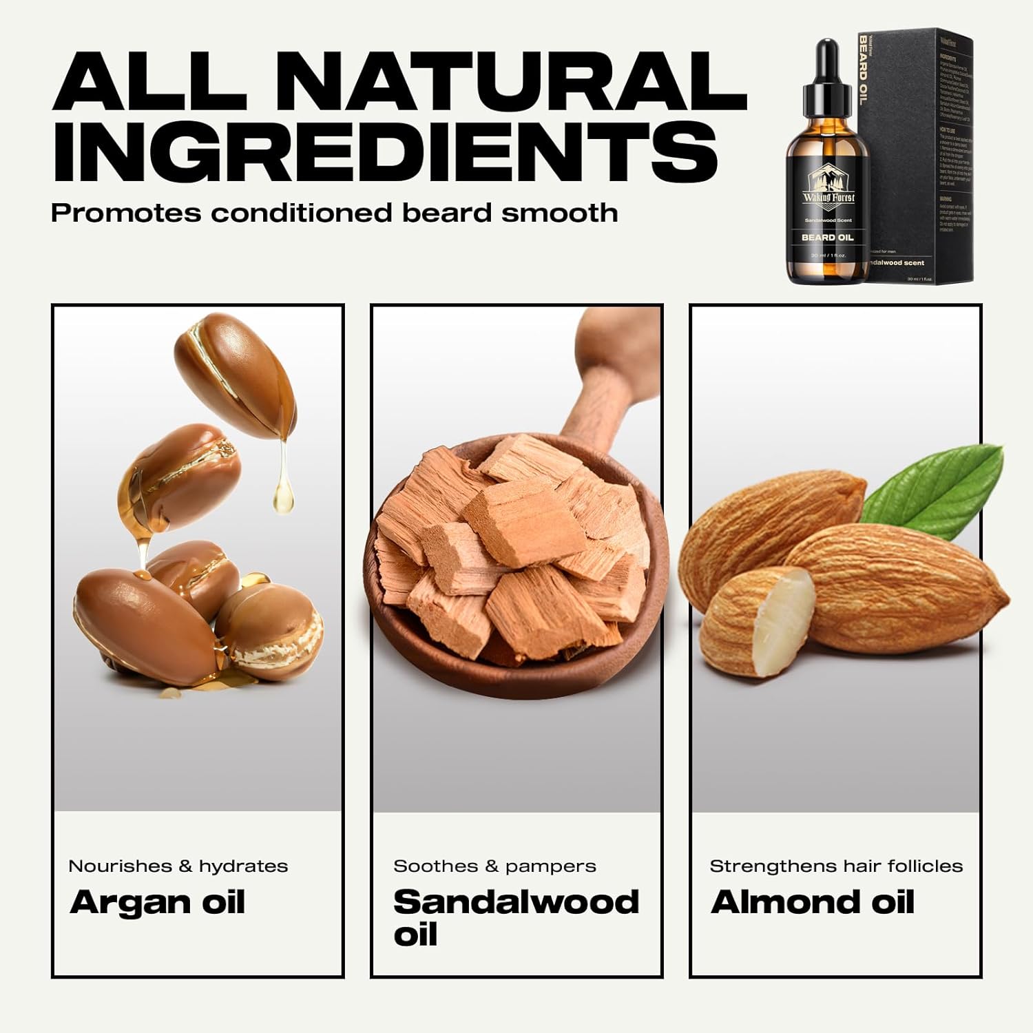 Waking Forest Beard Oil - Beard Oil for Men Thicker Beard with Vitamin E, Rosemary, Castor Mustache Oil for Black Men, Softens & Strengthens Beard Care Oil (Sandalwood, 1oz)