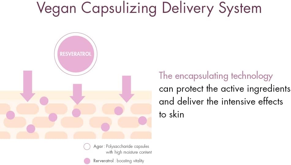 - 🍇Vegan Capsulizing Delivery System: The encapsulating technology protects the active ingredients and delivers the intensive effects to skin