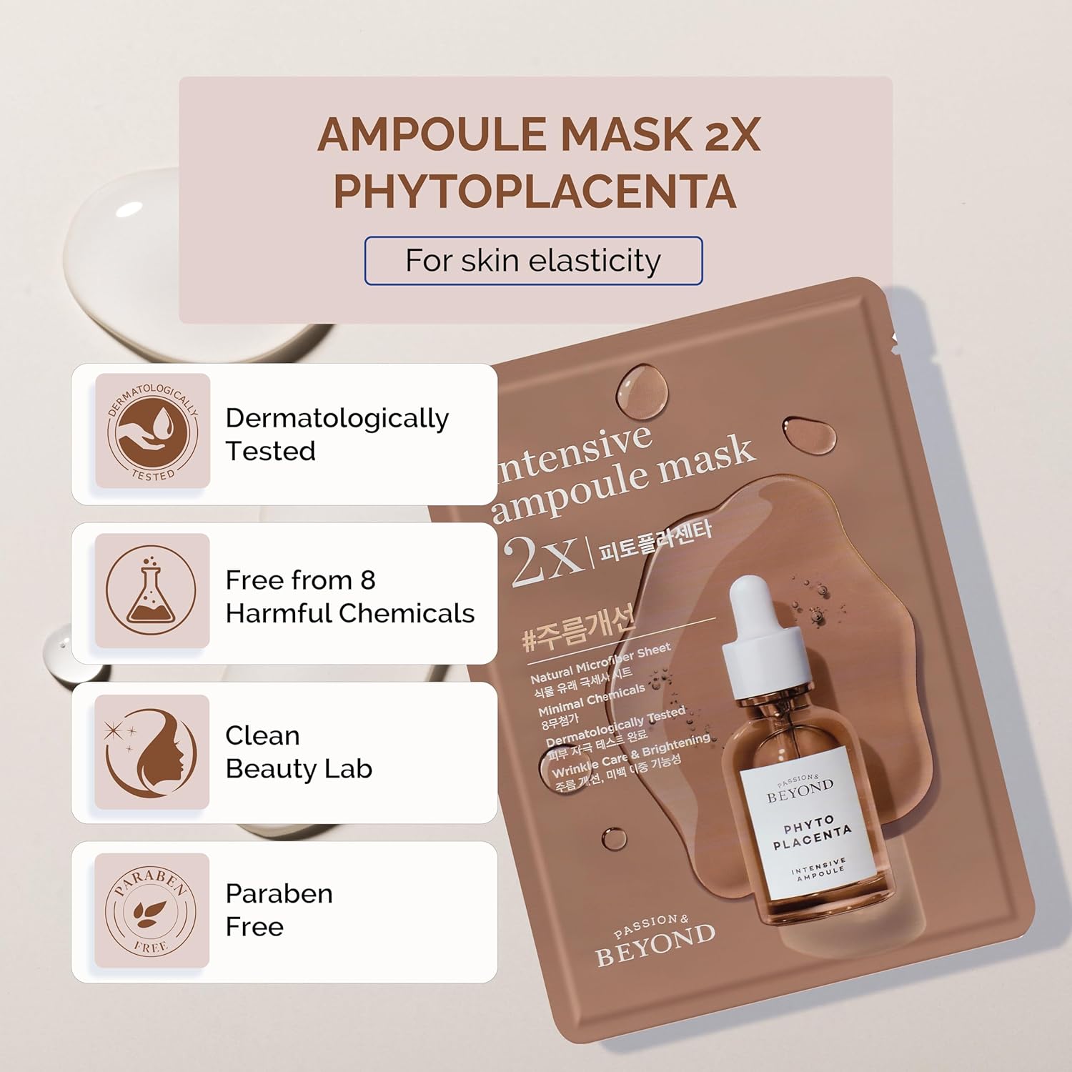 BEYOND Intensive Ampoule Mask 2X Phytoplacenta (25ml/0.85fl oz * 10 sheets) - Dermatologically Tested Hypoallergenic Sheet Masks for Improved Skin Elasticity