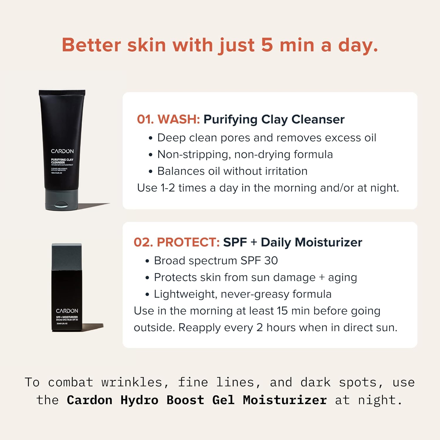 - OUR MISSION: To provide a simple shopping experience for men to get premium skincare at an approachable price. Join the Cardon self-care conversation and put your best face forward every day!