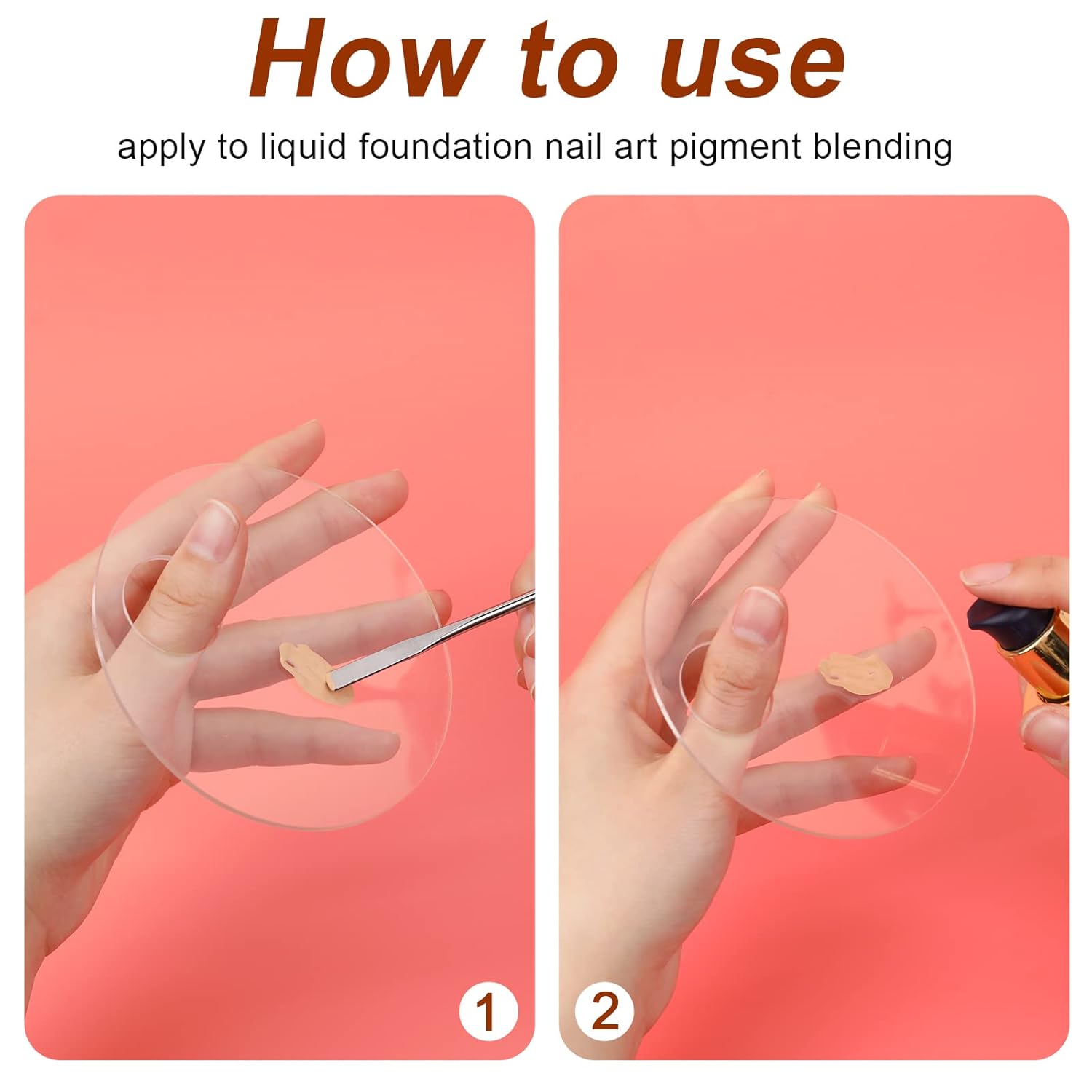 2PCS Acrylic Cosmetic Palette with 2PCS Spatula Tool,Makeup Palette Mixing Tray Apply for Foundation Eye Shadow Lipsticks Nail Art Professional Pigment Blending(Round)