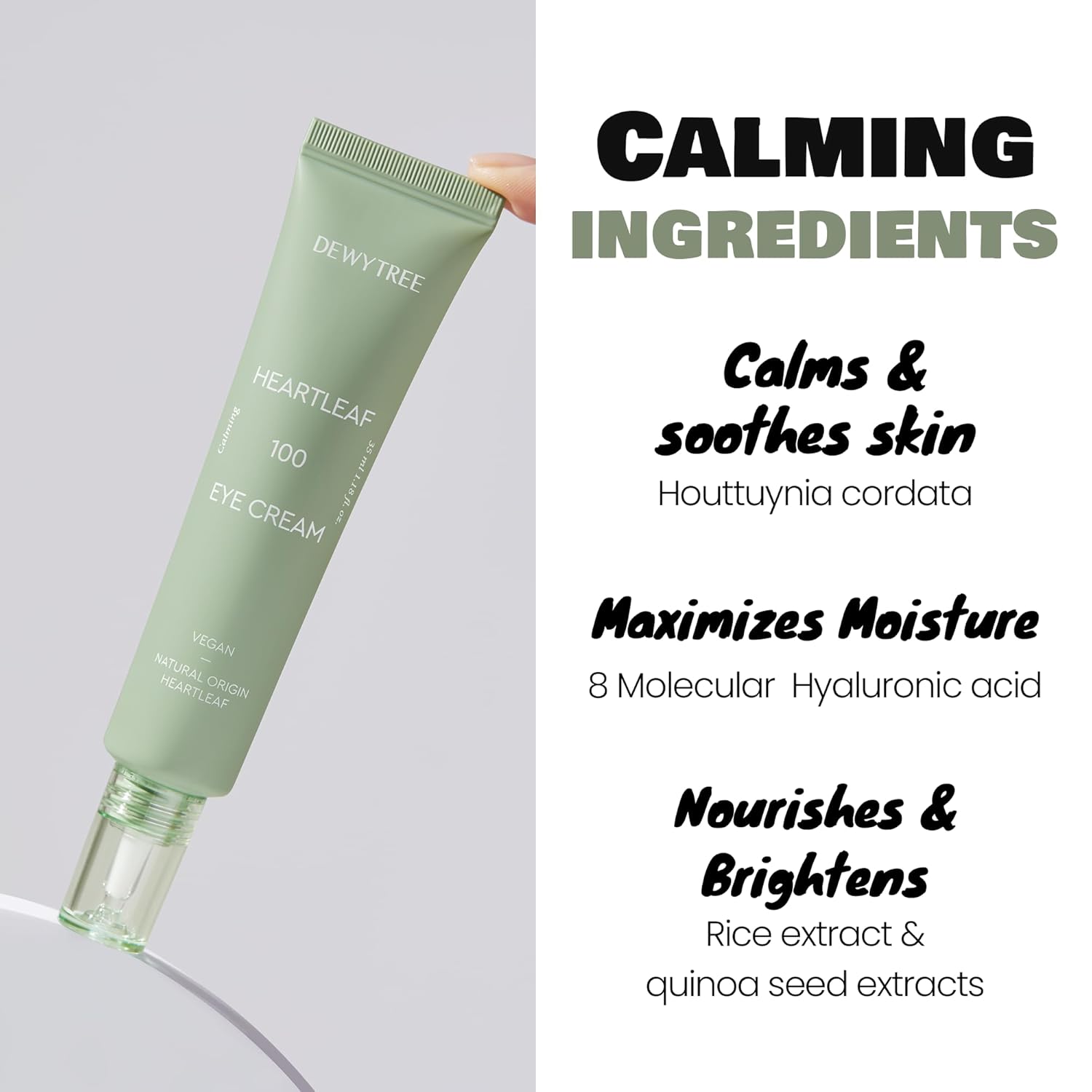 DEWYTREE Heartleaf 100 Eye Cream | Korean Eye Cream w/Rice Extracts & Quinoa Seed Extracts | Hydrating Eye Cream for Dark Circles and Puffiness | Vegan Firming Eye Cream (1.18 Fl. Oz.)