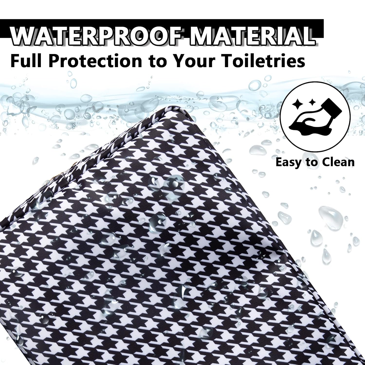 - 【Multiple Options】The waterproof makeup bag has four sizes, Mini(4.75''*2''*5''), Small(9.5''*2''*5''), Large(11''*5''*8'') and Slim(2.75*8''*2.75''). You can choose the right size according to the items you want to store. We have four types of patterns, Pink Heart, Houndstooth, Checkerboard grid and White Heart. You can enjoy choosing the pattern you like.