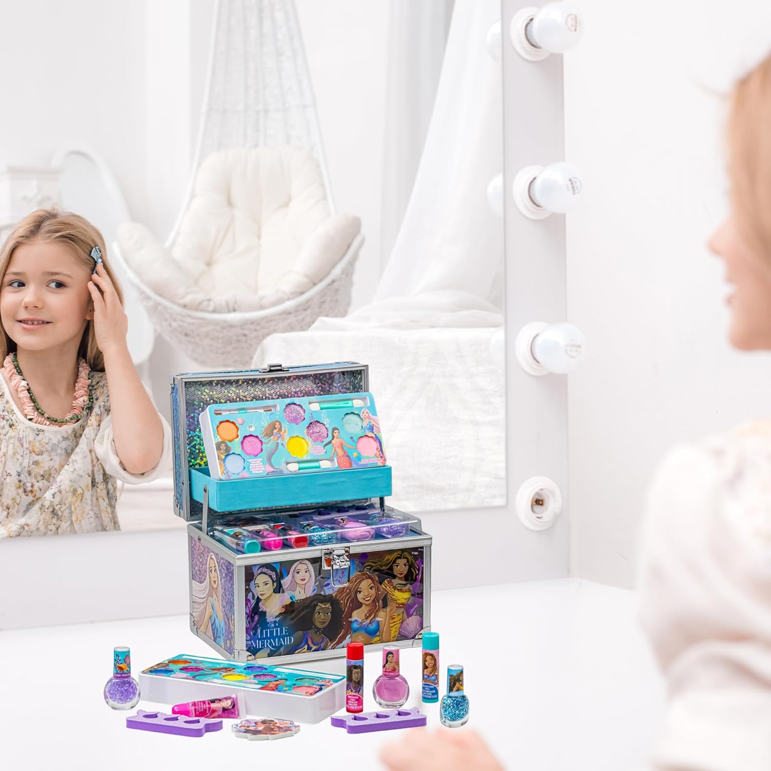 Little Mermaid Train Case Beauty Set, Kids Makeup Kit for Girls, Real Washable Toy Makeup Set, Play Makeup, Pretend Play, Party Favor, Birthday, Toys Ages 3 4 5 6 7 8 9 10 11 12