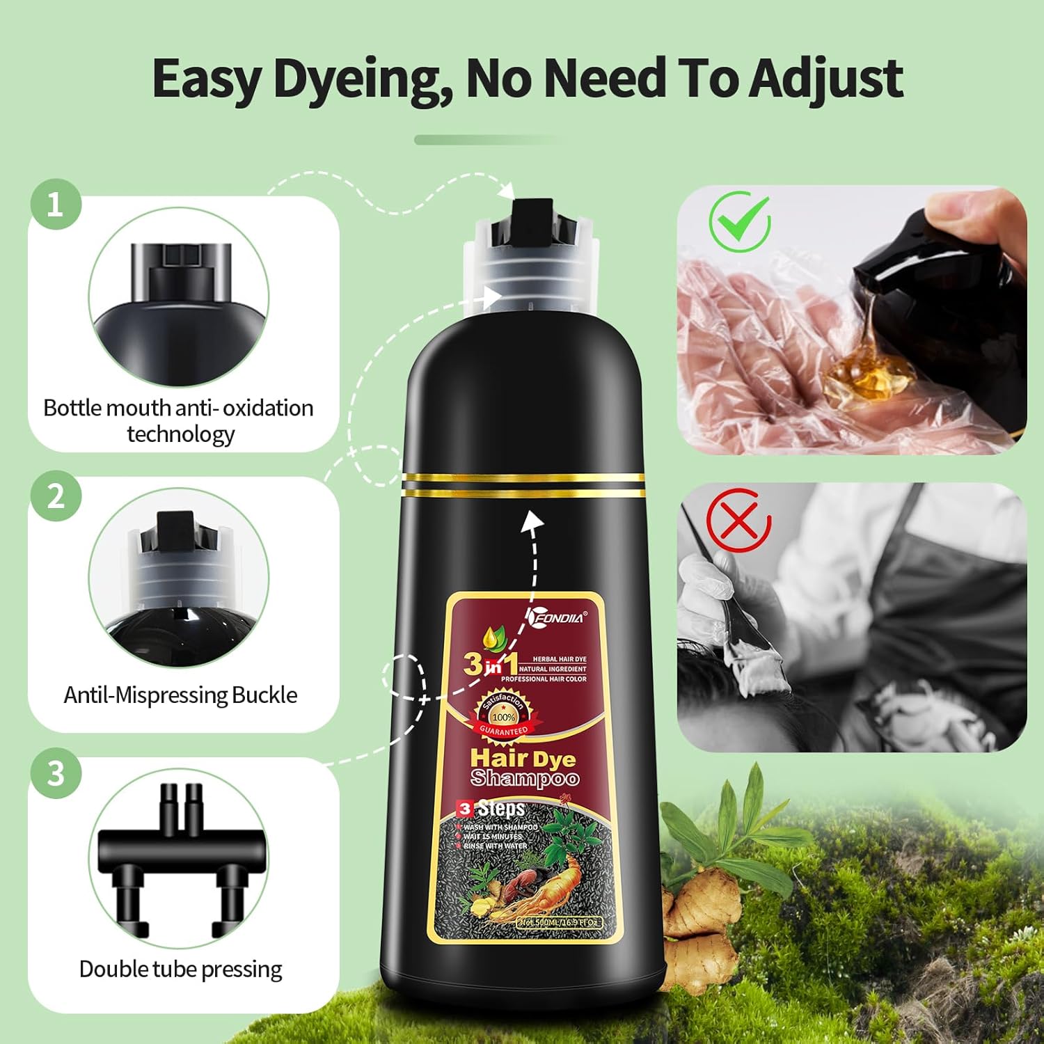 - Revolutionary Hair Dye Shampoo 3 In 1 - Our hair coloring shampoo is a combining shampoo, conditioner, and hair dye all in one easy-to-use product. Helps you cover 100% of your gray hair, say goodbye to the hassle of traditional hair dye and hello to a revolutionary new way to color your hair at home.