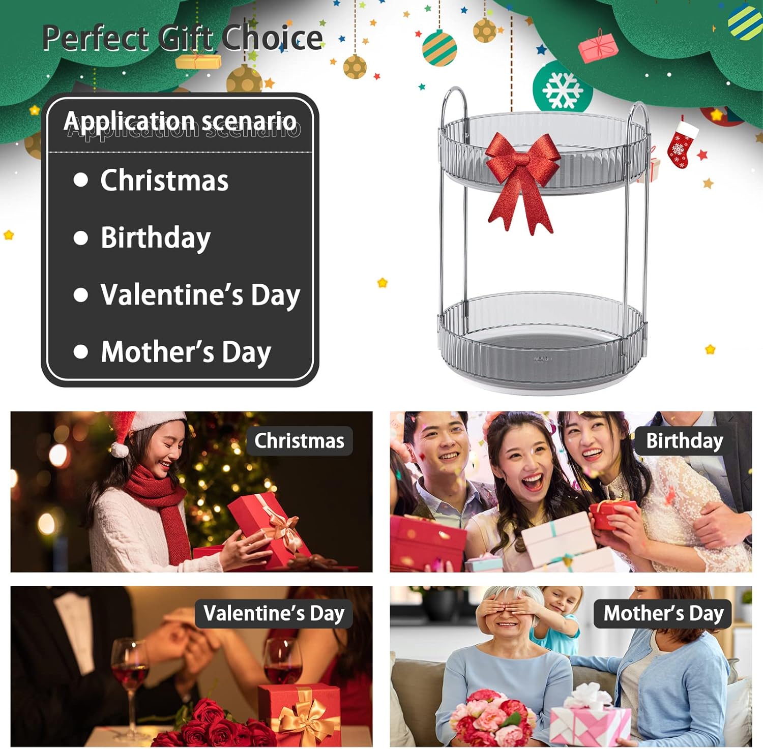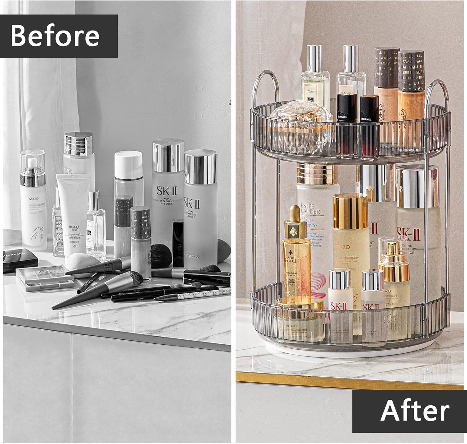 Rotating Makeup Organizer for Vanity, High-Capacity Skincare Clear Make Up Storage Perfume Organizers Cosmetic Dresser Organizer Countertop 360 Spinning (Gray, 2 Tier)