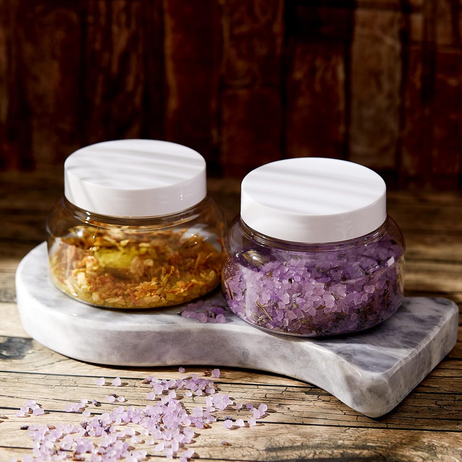 Tessco 24 Pack Plastic Jars with Lids Labels Empty Clear Plastic Jars Round Refillable Cosmetic Containers Body Butter Containers Bulk Sugar Scrub Bottle for Make Up(8 oz,White)