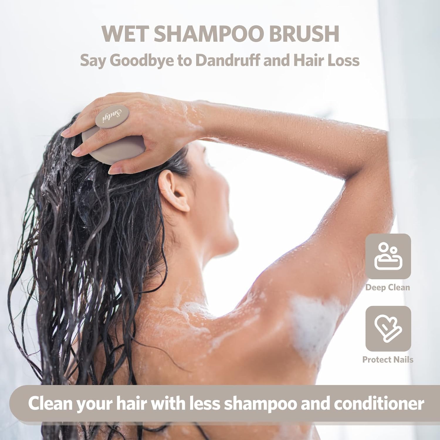 Sndyi Silicone Scalp Massager Shampoo Brush, Hair Scrubber with Soft Silicone Bristles, Scalp Scrubber/Exfoliator for Dandruff Removal, Wet Dry Scalp Brush for Hair Growth & Scalp Care, Khaki