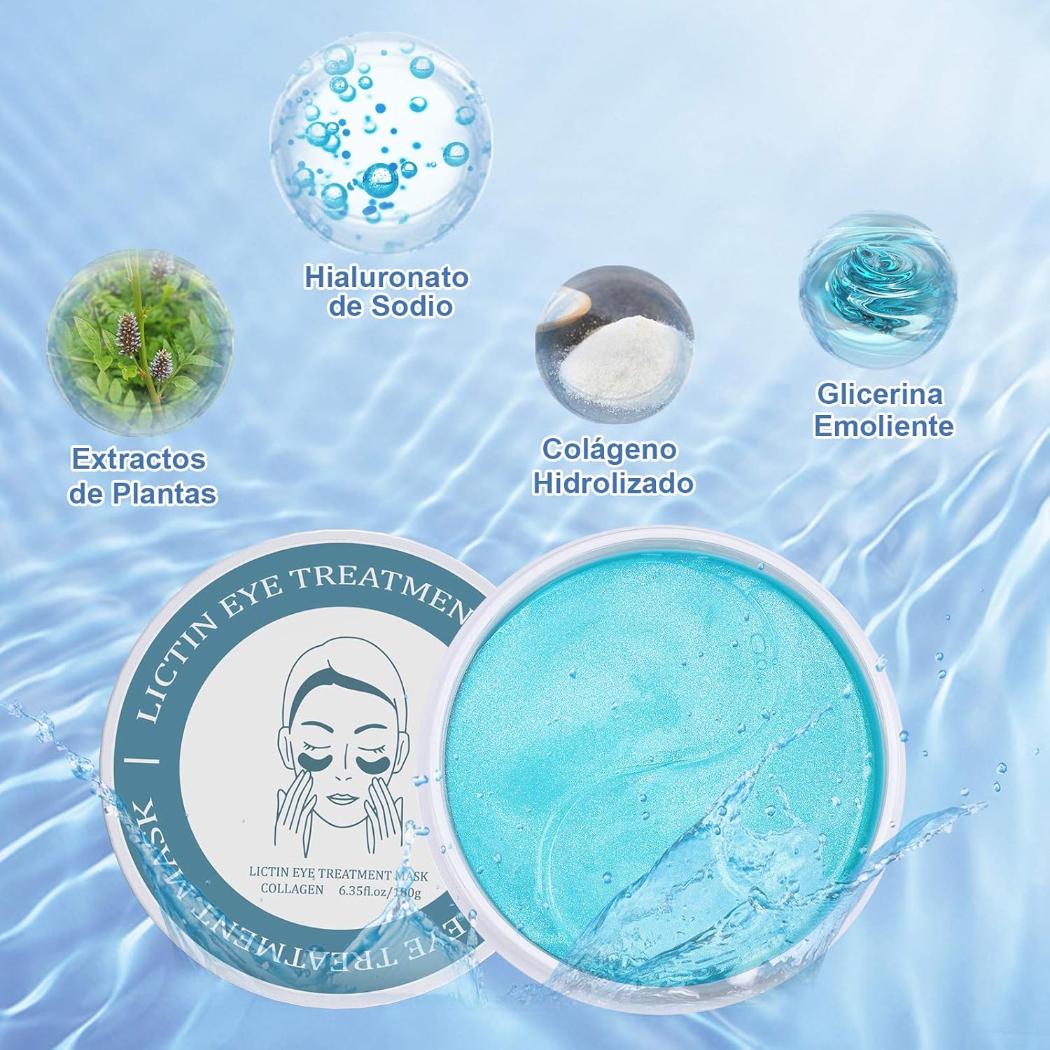 - Anti-aging and Anti-wrinkle: Lictin under eye patches are mainly made of hydrolyzed collagen, water, glycerin, Sodium hyaluronate and various plant extracts; Collagen can accelerate the stimulation and regeneration of skin cells, significantly promoting growth. Skin collagen restores the elasticity and hardness of the skin
