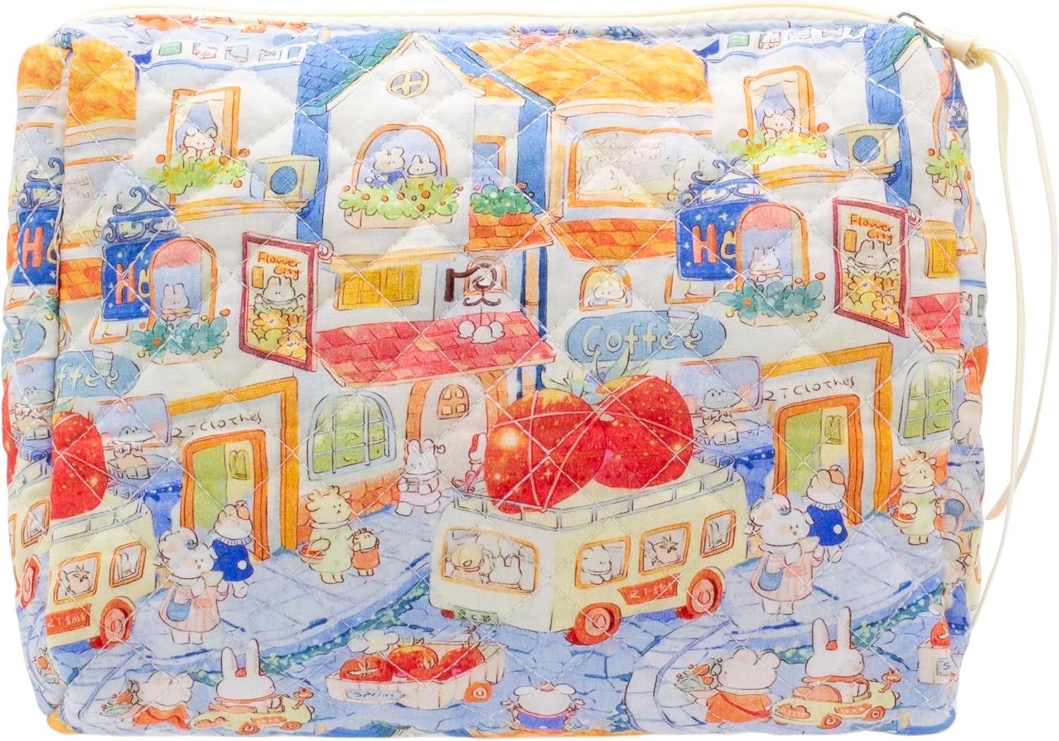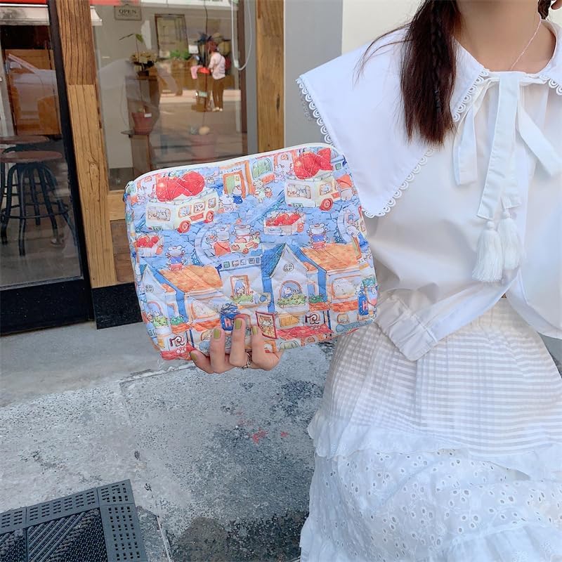 PAZIMIIK Quilted Makeup Bag Large Travel Zipper Soft Cosmetic Pouch for Women Girls Make Up,Little Bunny