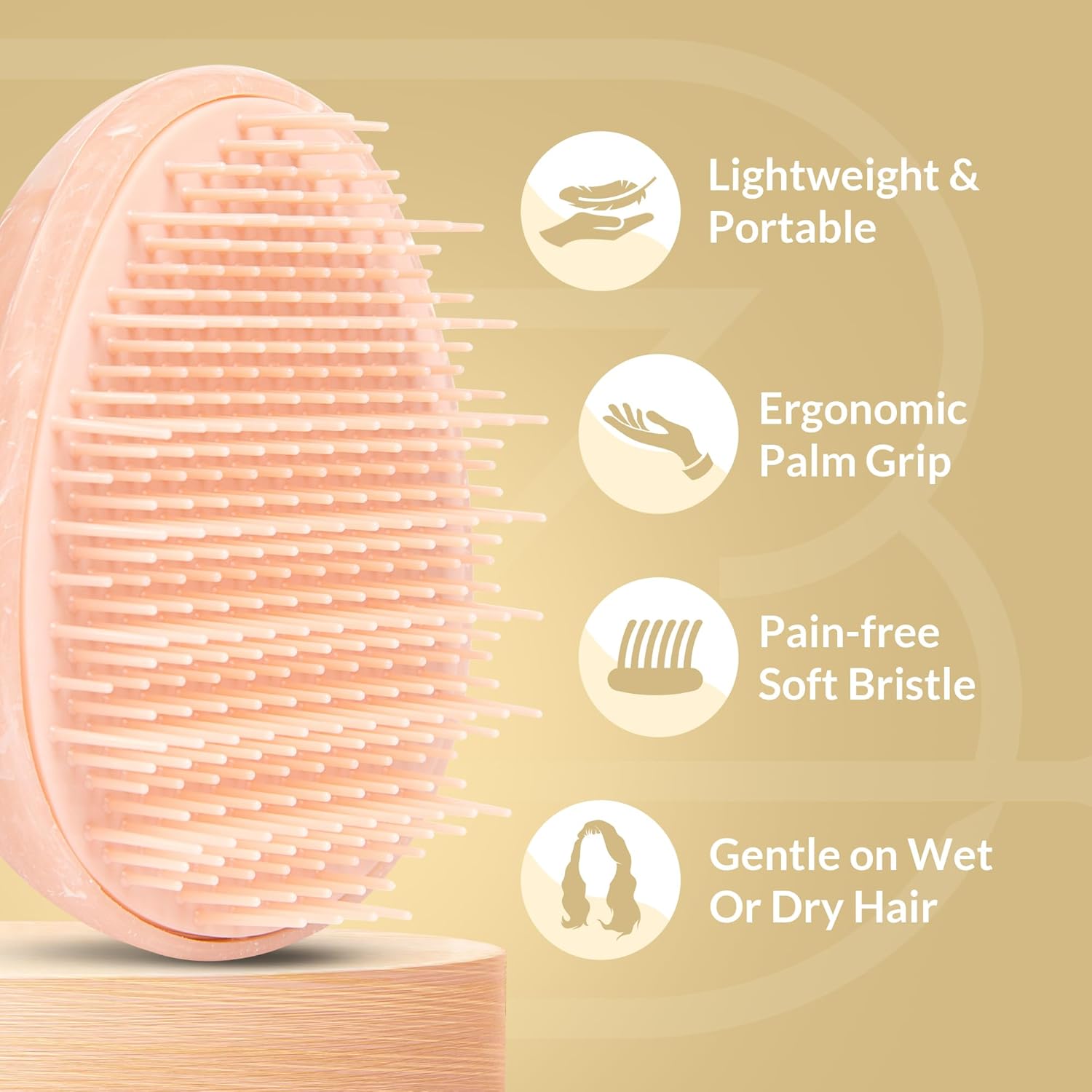 - Mini Detangler Brush: Our mini brush is designed to detangle hair effortlessly, reducing breakage and split ends. Our detangling brush features firm, non 'ball-tip', three-tiered bristles. The bristles are long enough to stimulate scalp circulation, fostering healthy hair growth. Its ergonomic shape ensures a secure grip during use.