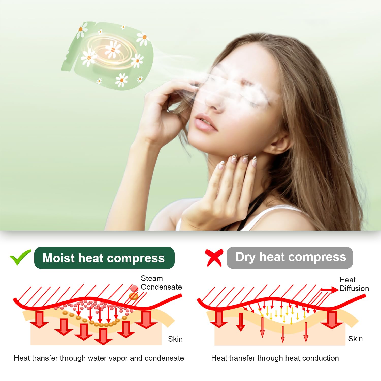 - ăEffectively Relieves Dry Eye Fatigueă: The unique design of our heated eye masks can promote blood circulation, release dense and even steam, provide a mild warming effect, gently soothe the skin around the eyes, effectively moisturise the eyes, improve sleep quality, and help you get rid of dry eyes, eye bags and dark circles, migraines and more. Give your eyes health and vitality and regain bright, clear eyes with our steam eye mask
