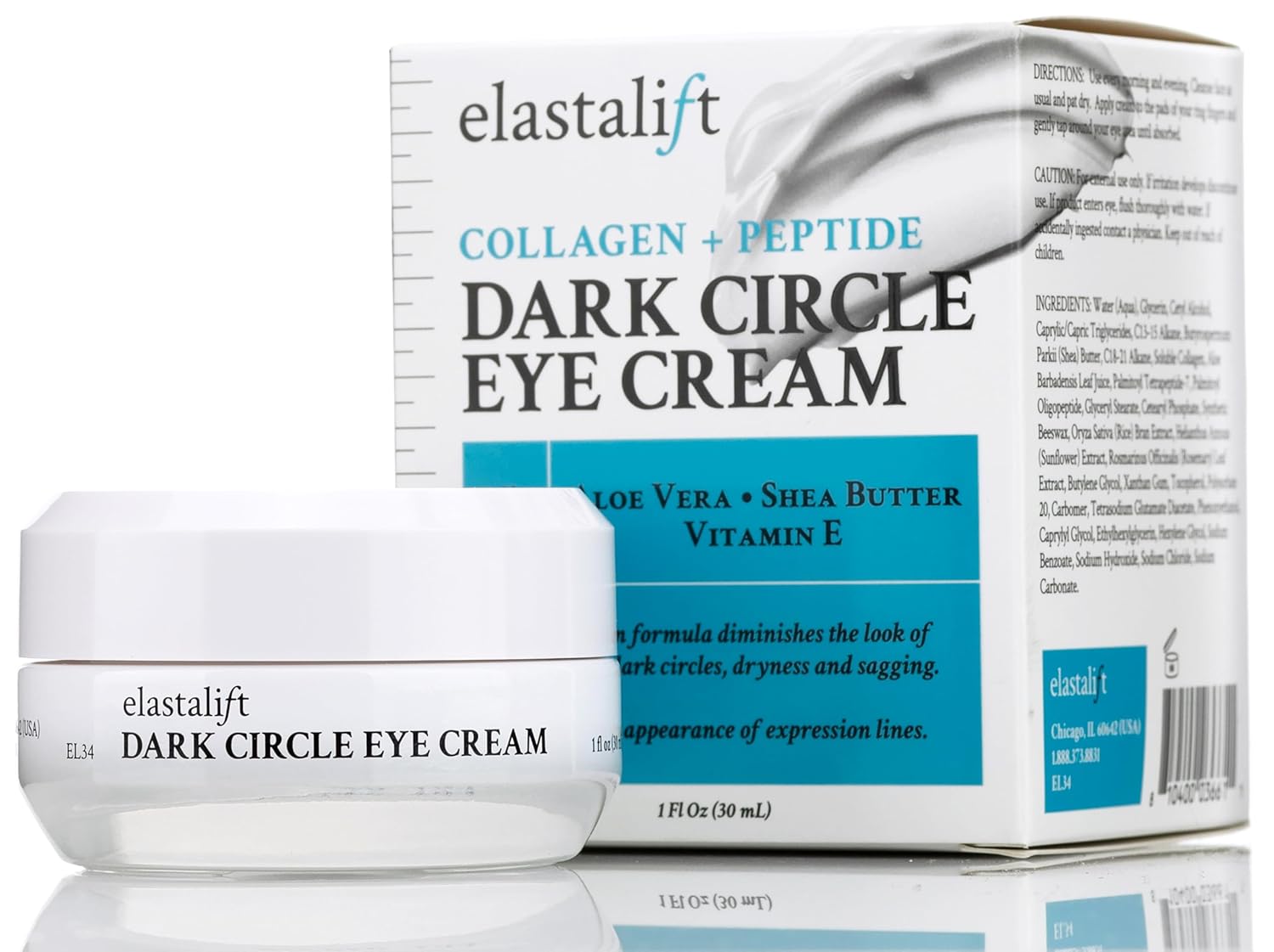 - Our Promise โ Trust in Elastaliftโs scientific skin care. Your Dark Circle Eye Cream is made with quality ingredients to ensure the formula exceeds our standards and yours. Nourish, soothe, & protect your skin while reducing the pesky appearance of dark circles, puffiness, sagging skin, & wrinkles with this Elastalift Collagen + Peptide Corrector Eye Cream.