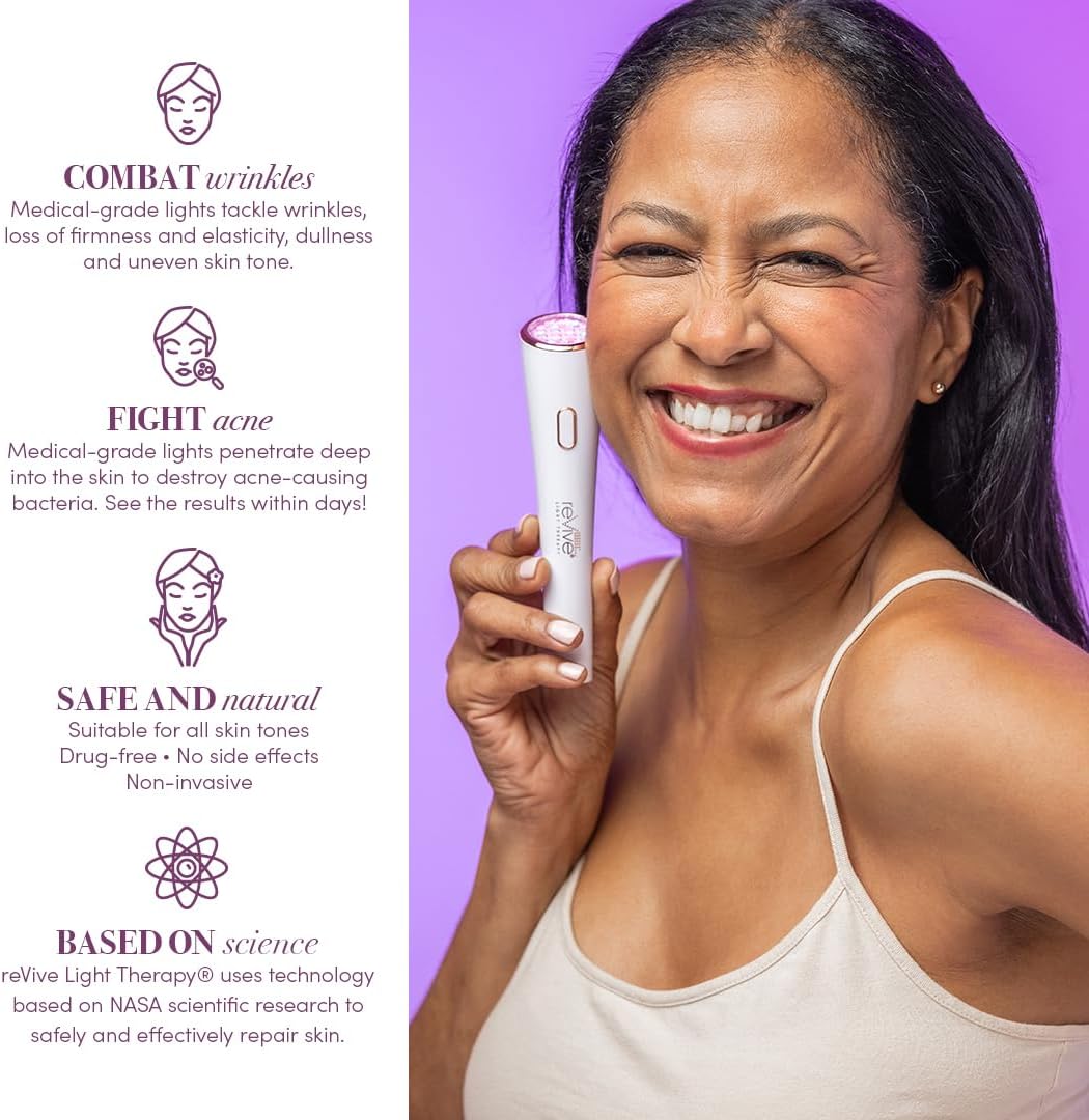 reVive Light Therapy Lux Collection GLO Acne Device for Face, Red & Blue Light Therapy LED Wand