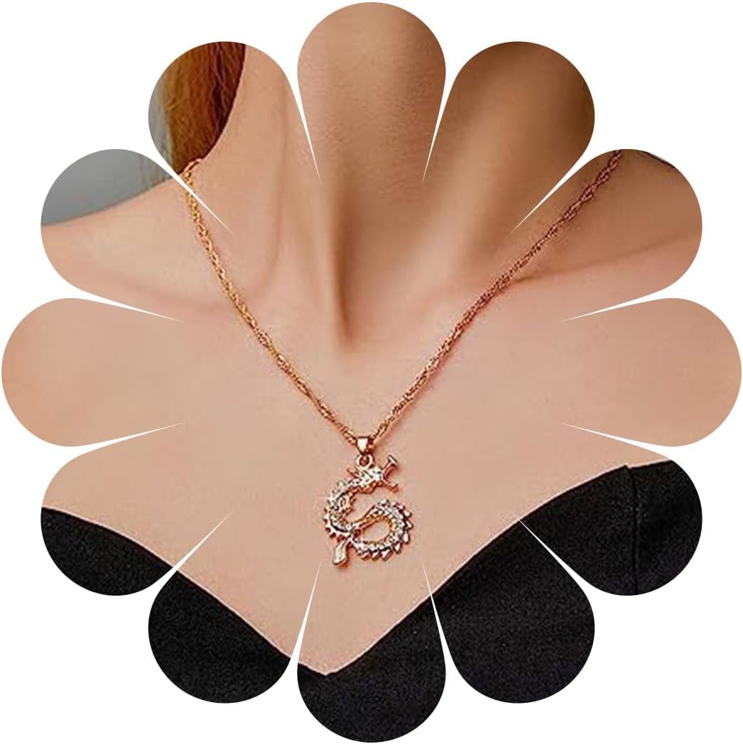 Vintage Dragon Pendant Necklace Punk Dragon Necklace Ancient Dragon Choker Necklace Gold Flying Dragon Necklace Jewelry for Women