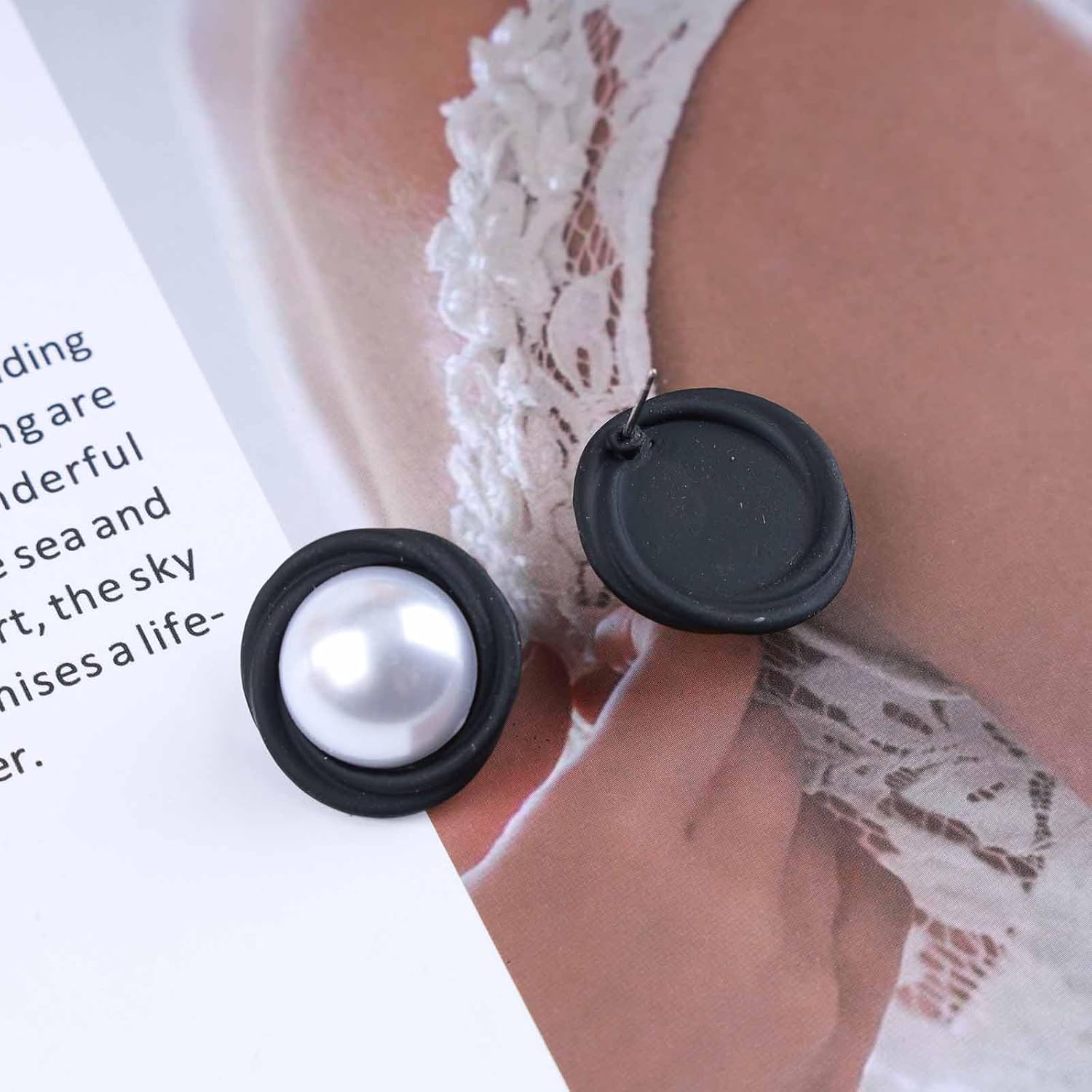 Vintage Mermaid Pearl Stud Earrings Half Pearl Earrings Black Enamel Circle Earrings Mermaid Stud Earrings Jewelry for Women and Girls