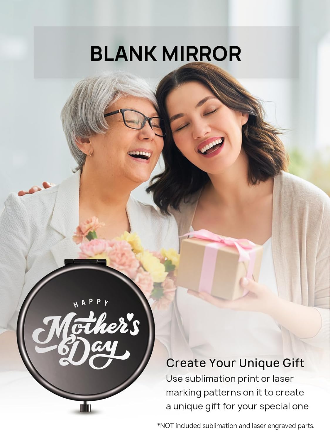 - BLANK MIRROR: DIY friendly. Use sublimation print or laser marking patterns on it to create a unique present. Customize gifts for your mom, father, daughter, friend, wife, etc., to make them feel special