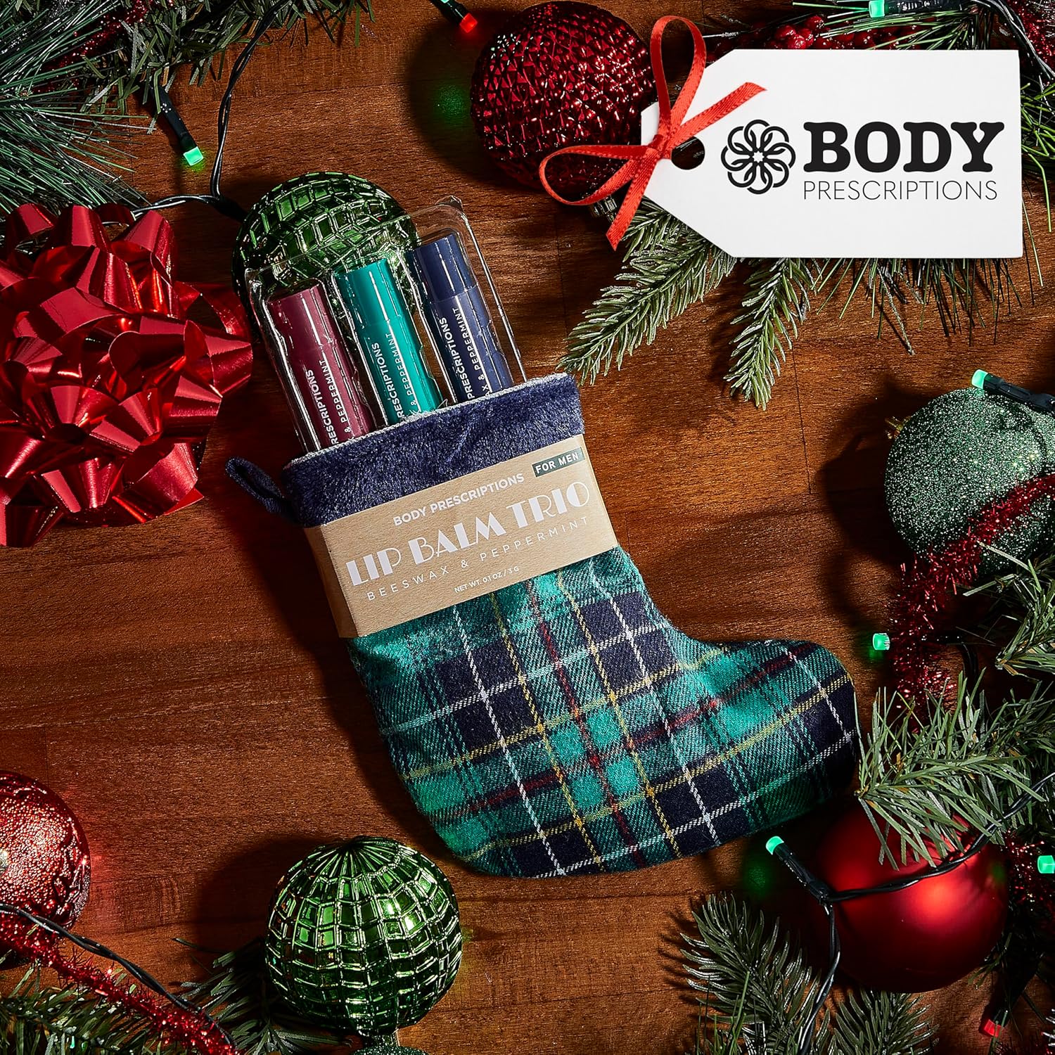 Body Prescriptions Lip Balm Trio for Men - Beeswax and Peppermint | Christmas Stocking Present Set | Nourishing and Moisturizing Formula | Protect and Hydrate Dry Lips | Great Holiday Present for Him
