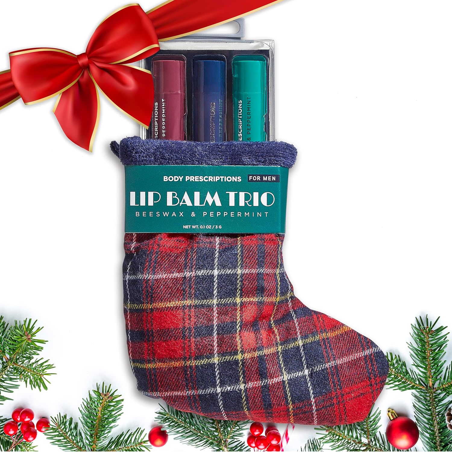 Body Prescriptions Lip Balm Trio for Men - Beeswax and Peppermint | Christmas Stocking Present Set | Nourishing and Moisturizing Formula | Protect and Hydrate Dry Lips | Great Holiday Present for Him