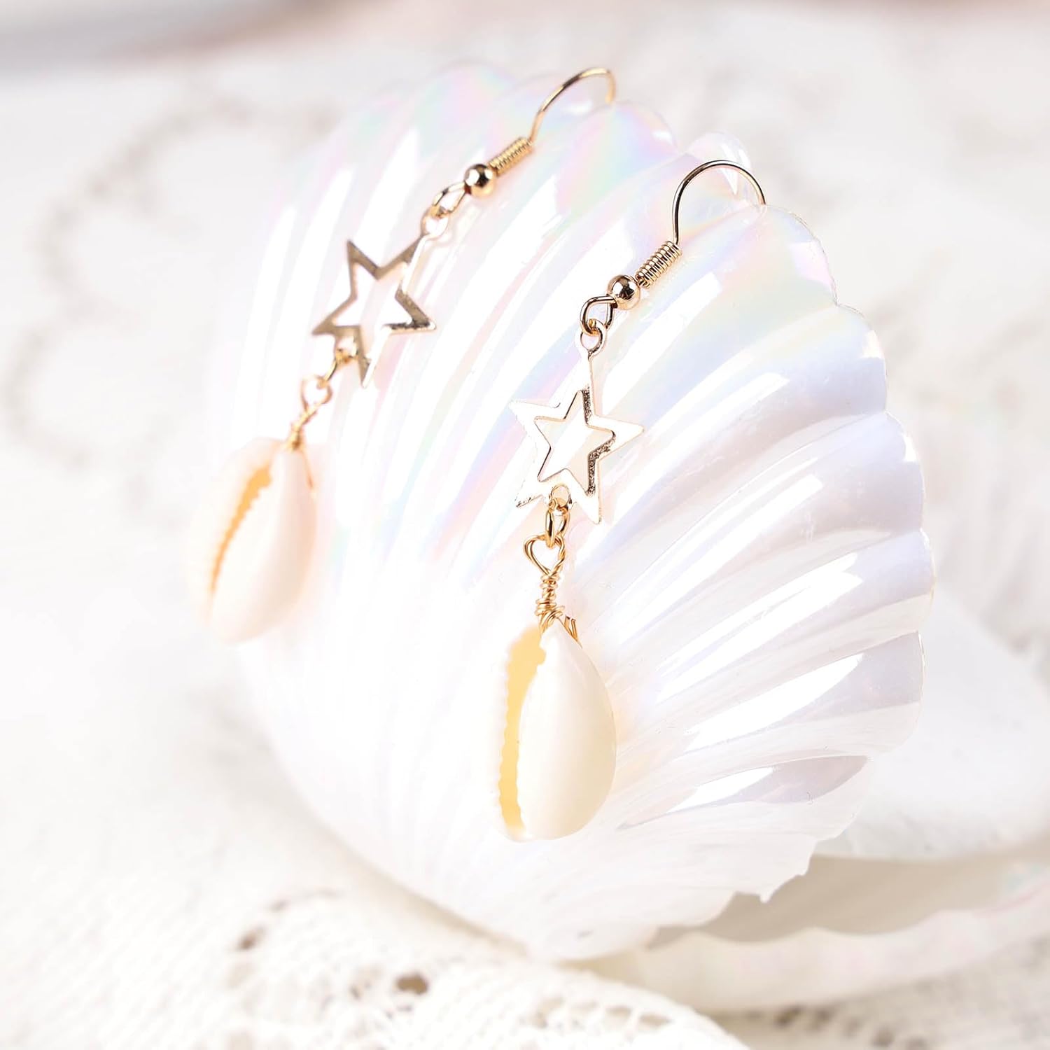 - 【Exquisite and Simple】Statement shell earrings perfectly accentuate the beauty of this earring jewelry with cutout stars and shell drop earrings.
