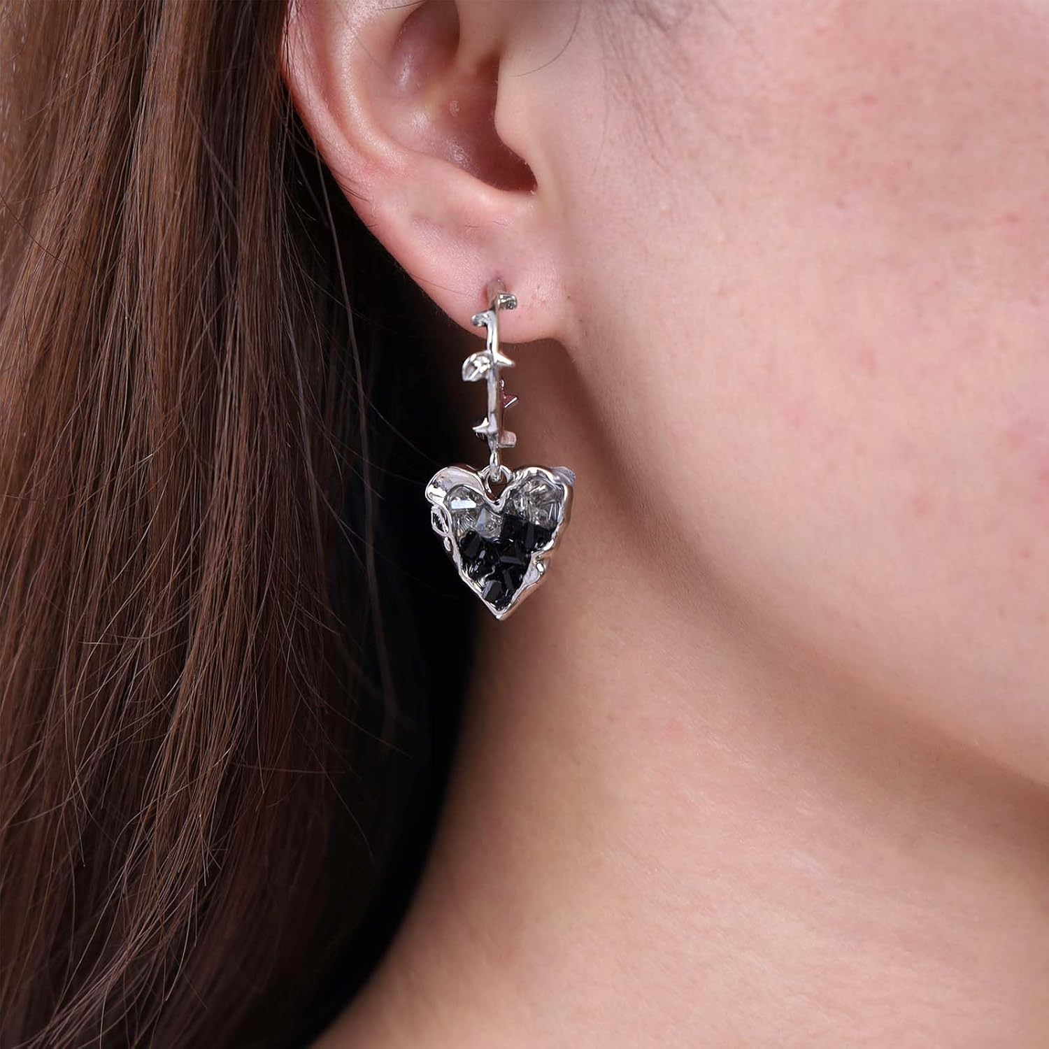 - Black heart dangle earrings.Item Details:Handmade Item.Size:As Shown.Color:Black.Materials:Quality Alloy/Crystal.Location:Ear.Style:Boho/Vintage.