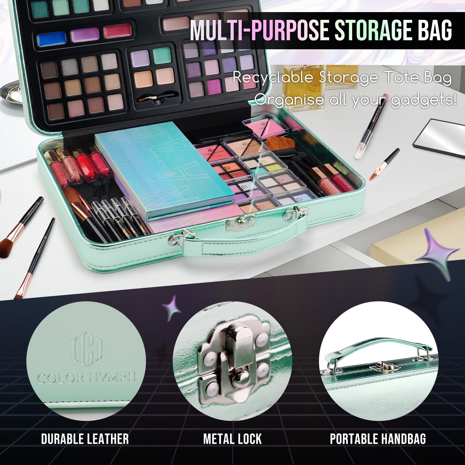 Color Nymph All in One Girls Makeup Sets for Any Ages, Teen Makeup Kits for Beginner with Green Case, Eyeshadow Palettes Blush Lipgloss Eyeliner, Cosmetics Gift Set for Birthday