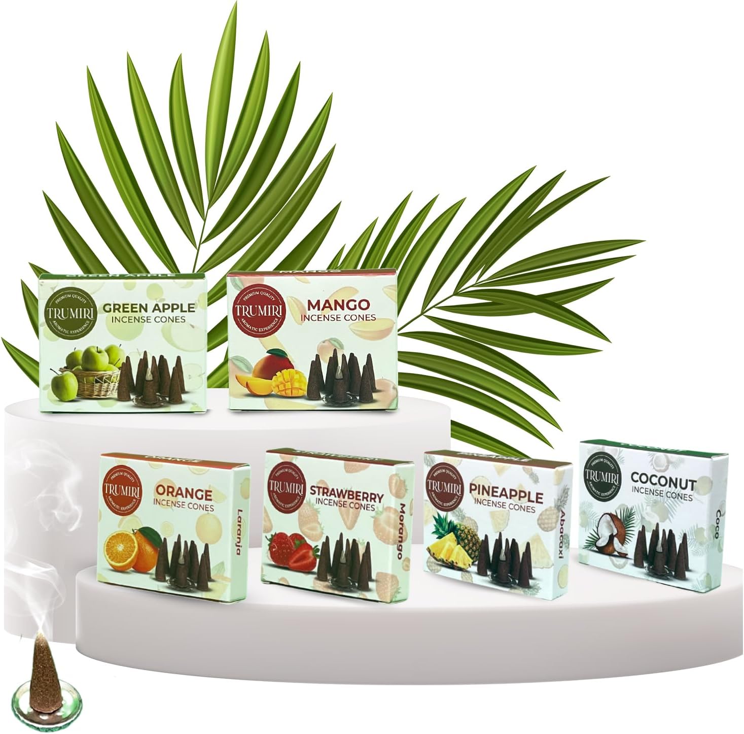 Trumiri Fruity Incense Cones - Variety Pack - Total 60 Cone Incense (6 Scents x 10 Conos) - Strawberry, Coconut, Pineapple, Apple, Mango, Orange - Cone Incense Scents - Insense Cones - Incent Cone