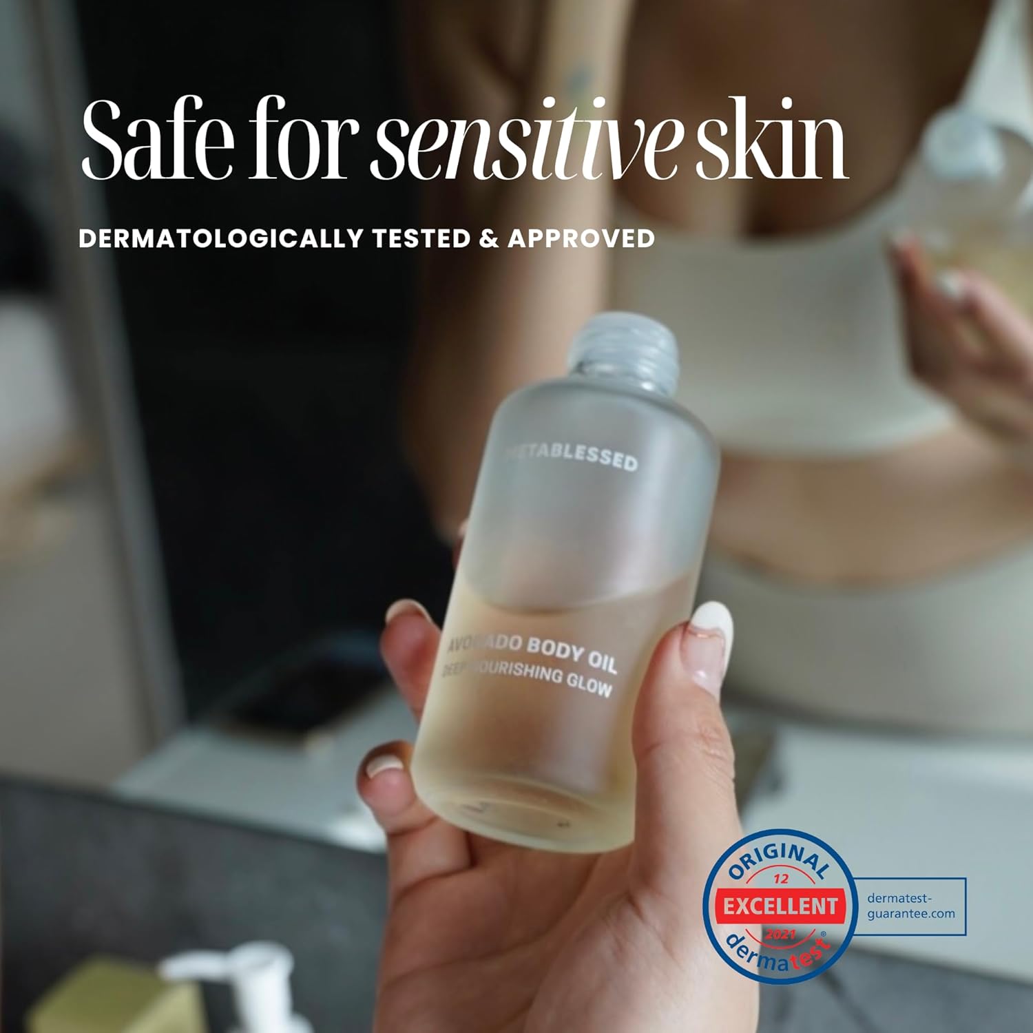 - DERMATOLOGIST APPROVED SAFE FOR SENSITIVE SKIN: Our body oil has been dermatologically tested by the renowned German dermatological institute Dermatest, and received an Excellent Grade Certification for its compatibility with sensitive skin after a 72 hour patch test. This makes it the perfect choice for all skin types, including individuals with eczema or rosacea.