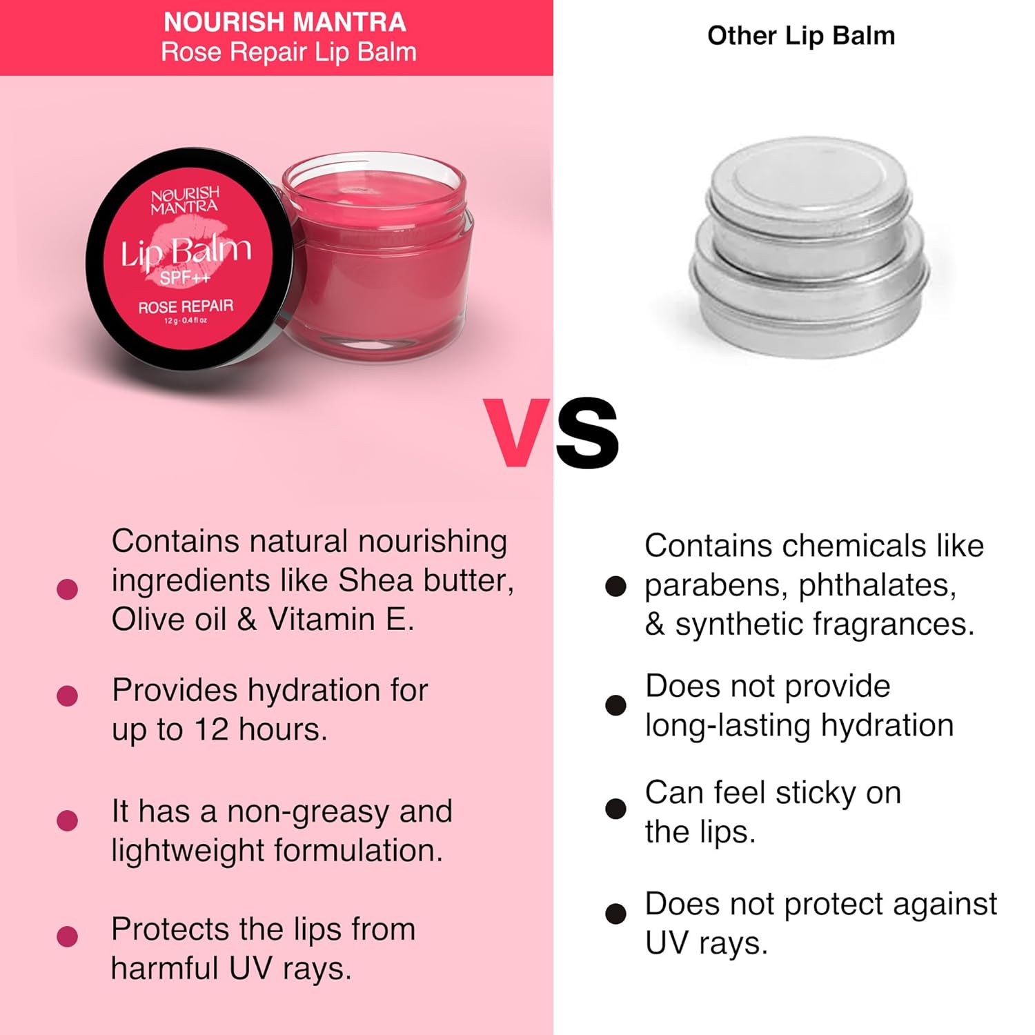 Nourish Mantra Rose Repair Lip Balm with SPF | Made with Rose Extracts, Olive oil, Shea Butter, Vitamin E & Avocado Oil | For Dry, Chapped and Dark Lips | Best for Both Women and Men | 12g
