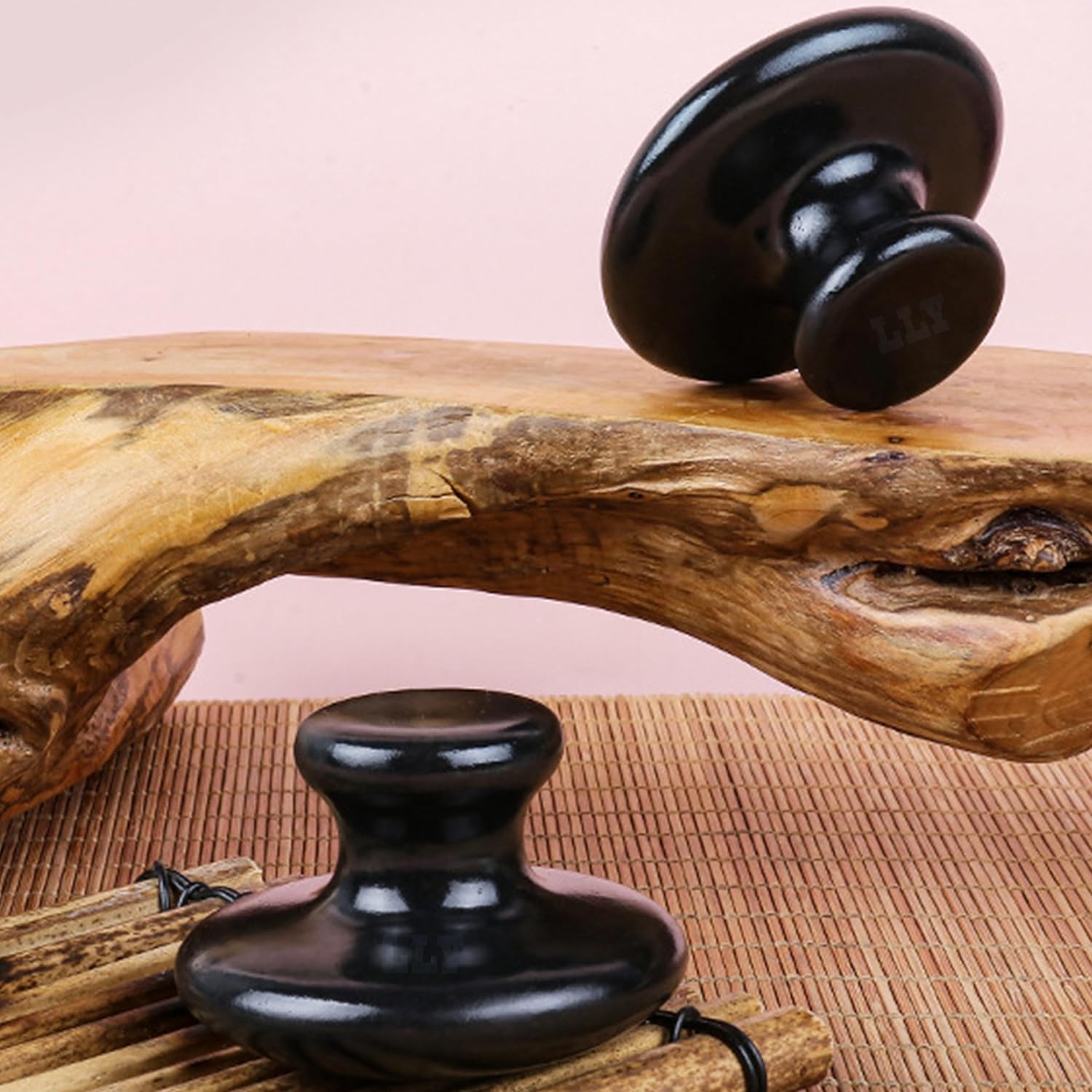 LLY Multifunctional Scraping Massage Tools. Natural Black sibin bian Stone. Beauty & Health Care,Relieve Wrinkles,Muscle and acupoint Massage (Mushroom Scraping Massager 2 Pack)