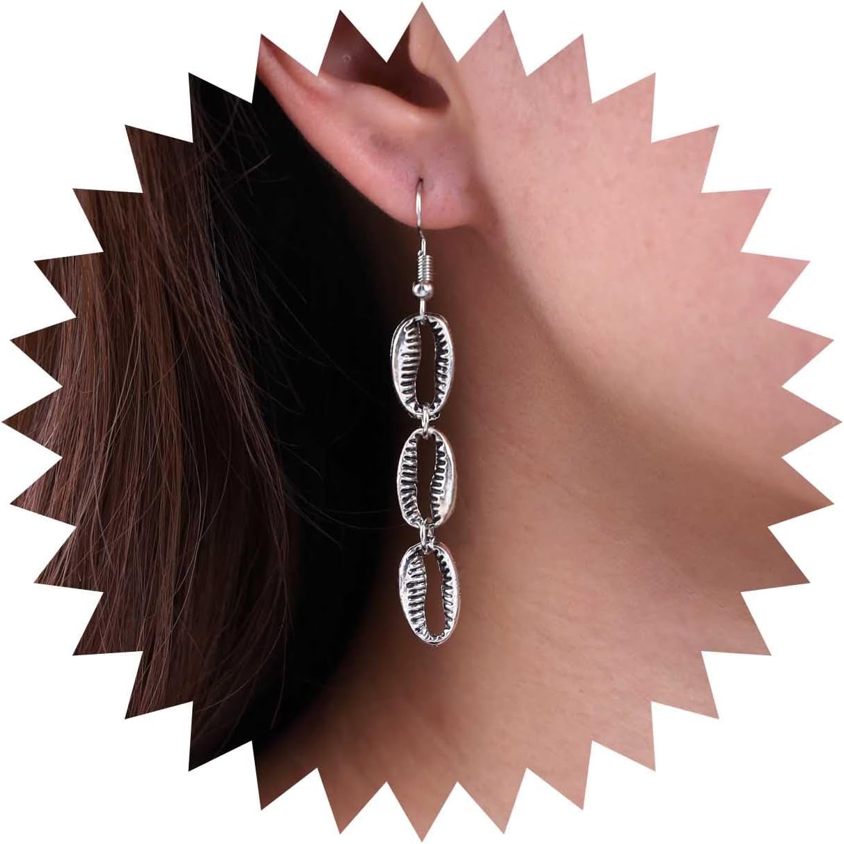 Boho Cowrie Shell Earrings Silver Shell Drop Earrings Vintage Sea Shell Earrings Long Metal Cowrie Earrings Jewelry for Women