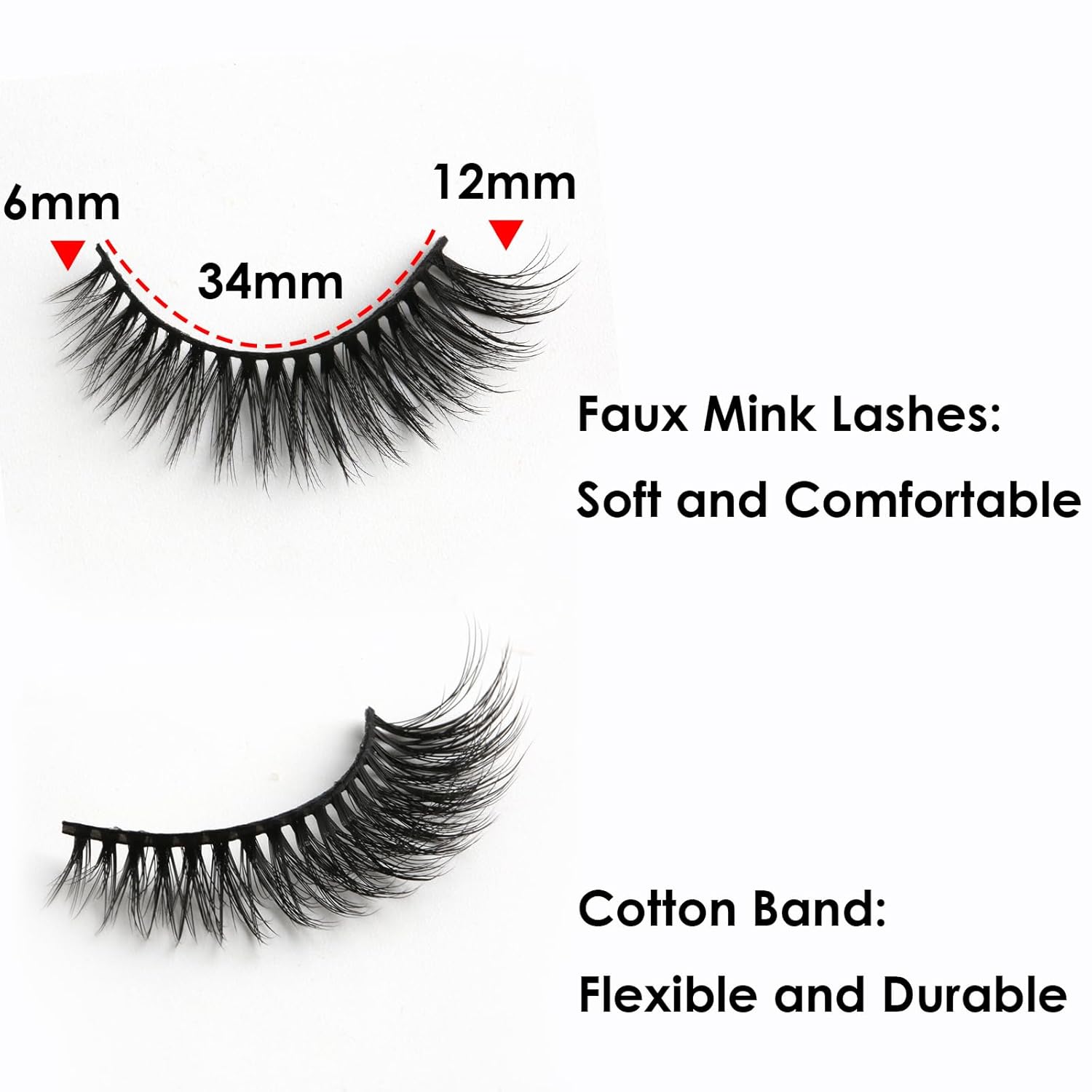 - Comfortable Band - With the thin band, the lashes can be soft & ligheweight, bring you comfortable wearing experience. No burden to makeup. 34mm flexible and durable band can be trimed easily to suit your eye. The lashes can be reused with proper care.