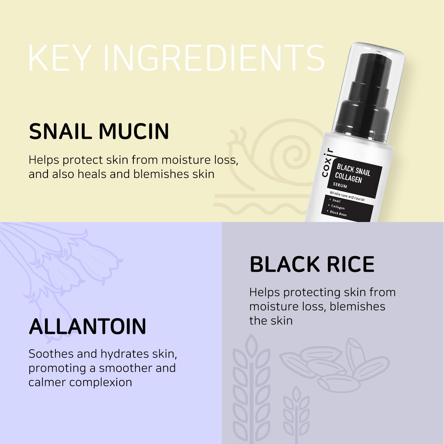 coxir BLACK SNAIL GIFT SET /Gift Set Birthday present /Foam Cleanser+Serum+Cream/Black Rice, Bean, Sesame, Snail Mucin, Collagen, Peptide l Repairing&Firming l Korean Skin Care