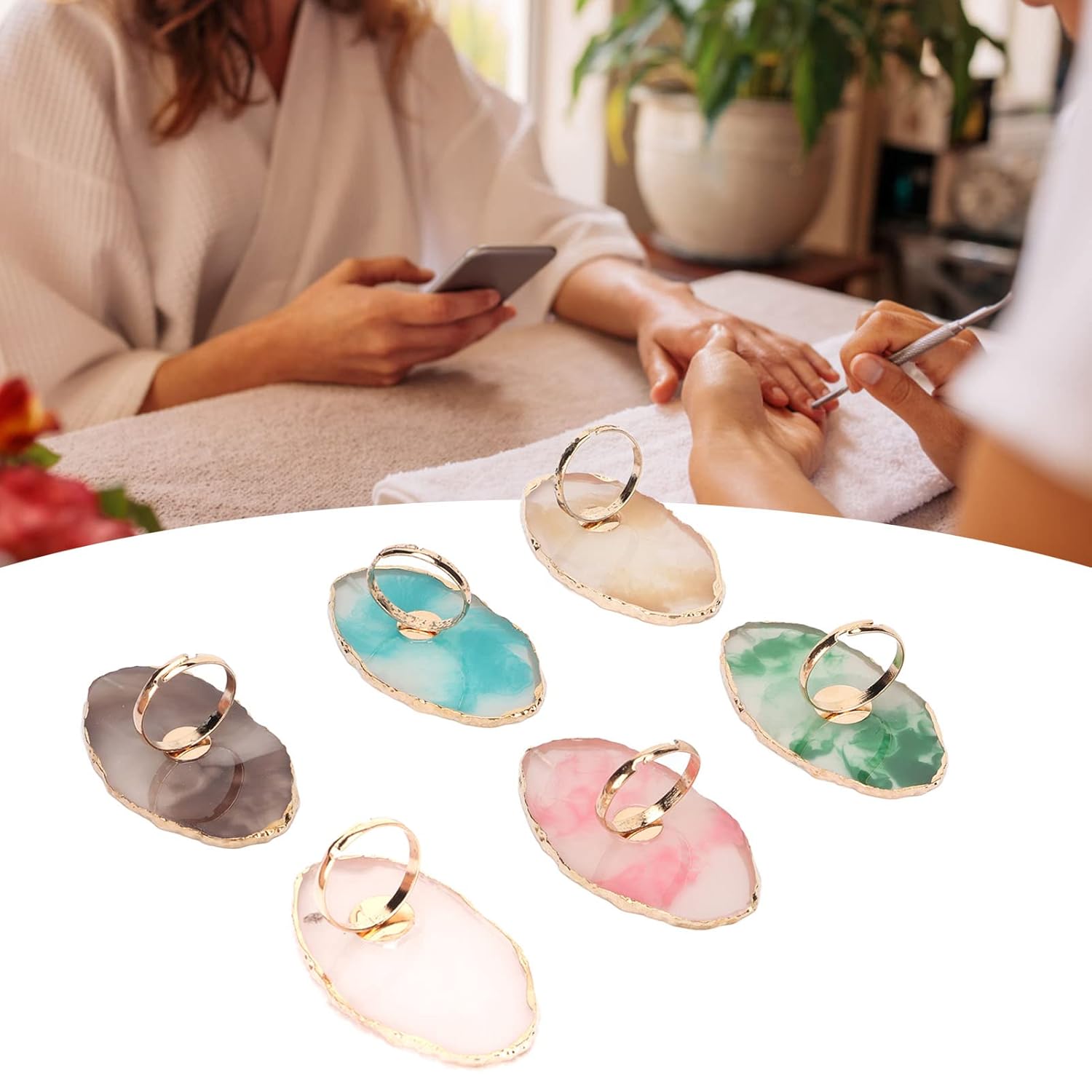 - ELEGANT AND EXQUISITE APPEARANCE: The resin nail art palette ring is designed with gold edges, beautiful colour and comfortable texture, perfect for nail art design. It shows an elegant and delicate appearance, allowing you to enjoy a higher quality experience during your manicure