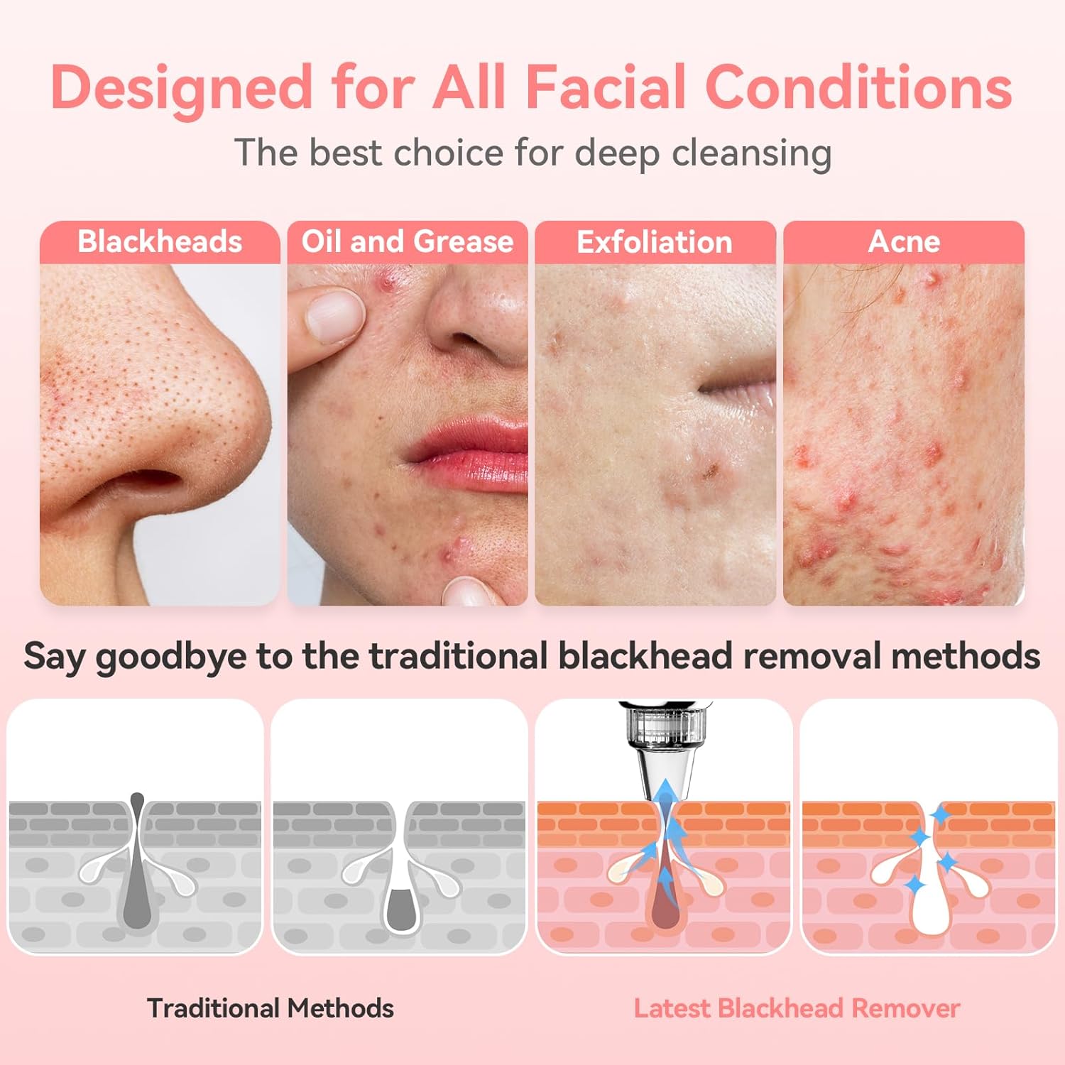 - Newest Technology Blackhead Vacuum Cleaner: Super Pore Vacuum Cleaner can be safely used directly on the face for deep cleansing, effectively removes blackheads, whiteheads, dead skin, oil and cosmetic residue without harming the skin