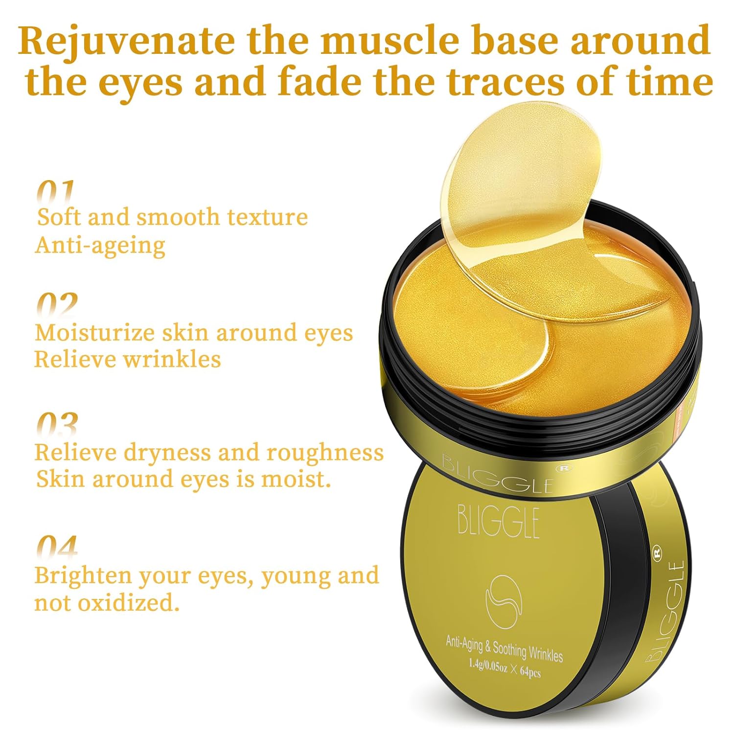 Under Eye patches (64 pcs)-24K Gold Eye Mask with Hyaluronic Acid, Cooling Eye Care for Puffy Eyes & Dark Circles Treatments,Reduce Under Eye Bags and Smooth Wrinkles