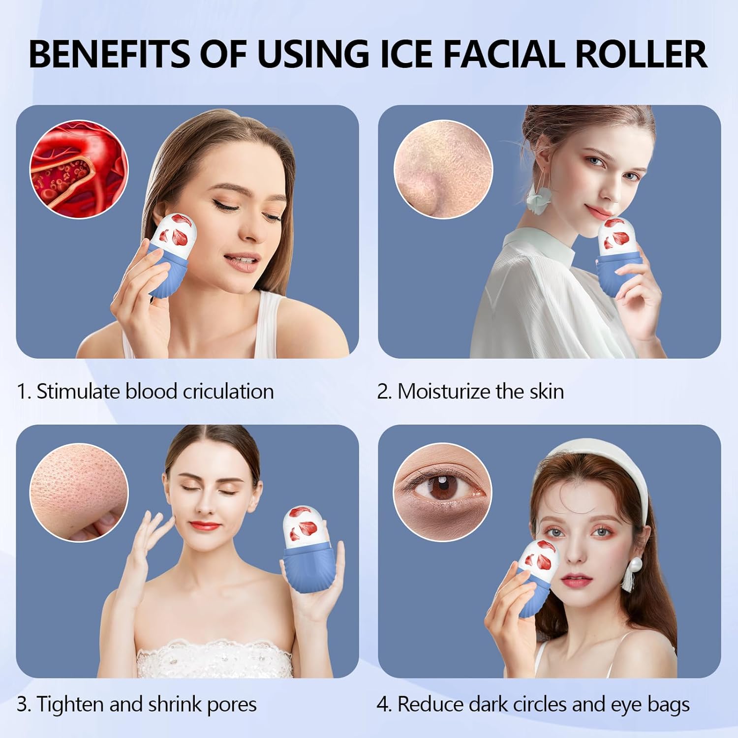 - Facial Ice Roller - Our ice roller for face is a skincare tools that helps you to improve skin problems and skin health, which is suitable for all skin types, It has multiple functions such as beauty, cleansing. We suggest using your ice cube each morning for an instant wake up for improving tired skin, giving your face a healthy glow.