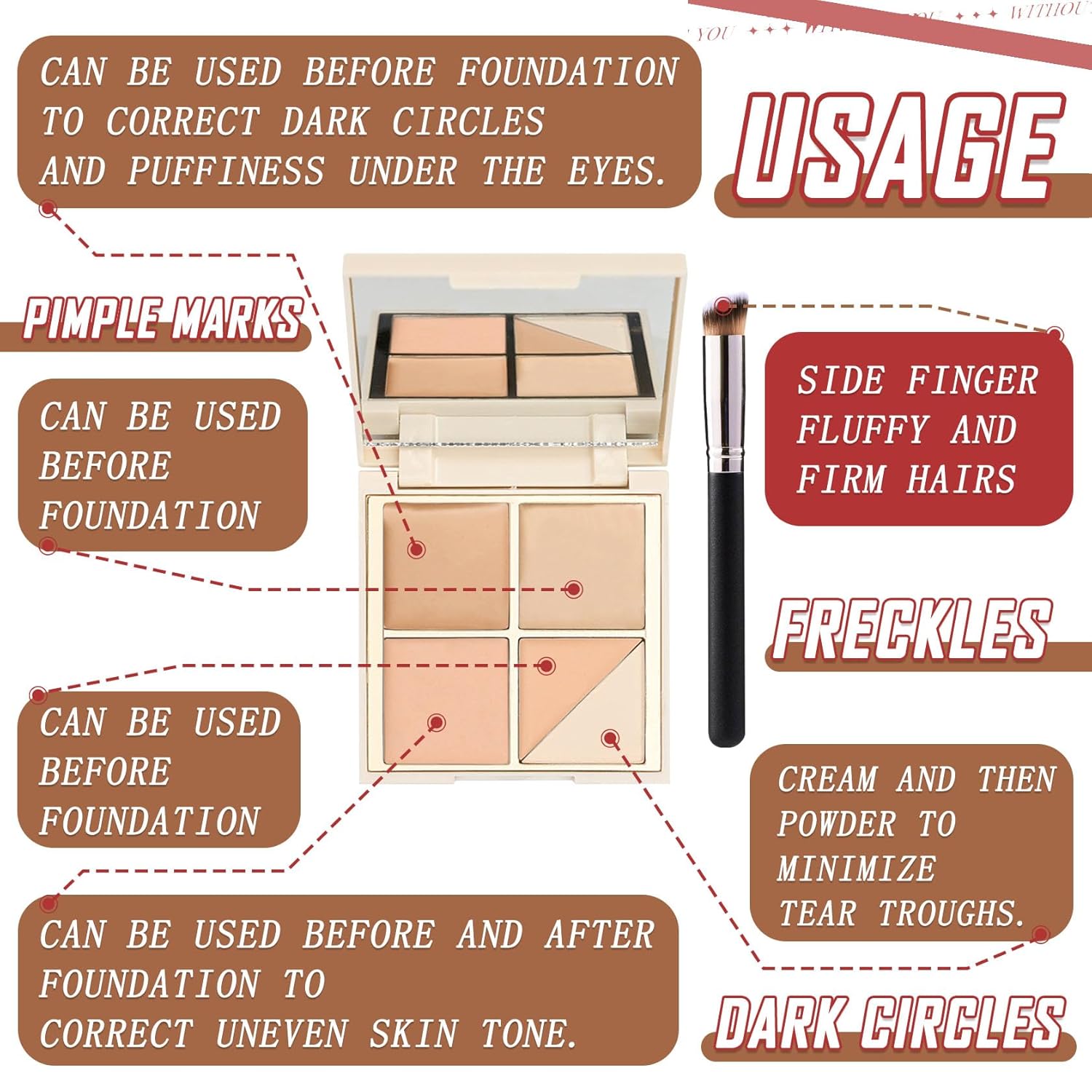 - 🎁【Easy Use】The Makeup palette comes with a professional concealer brush that allows you to apply your makeup with ease, dabbing on the concealer to create a sophisticated and perfect look.