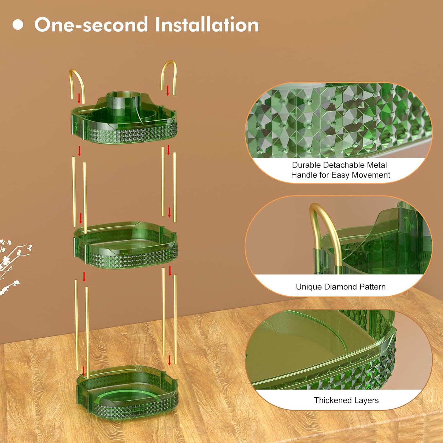 - 360 Degree Rotation& Easy to Install:➤Reinforced steady base rotates smoothly and silently, the rotating makeup organizer is easy access to all of your make-up in seconds.Less installation step are required other than inserting metal rack and handle,do not worry about repeated disassembly to shorten the lifetime of the makeup organizer.