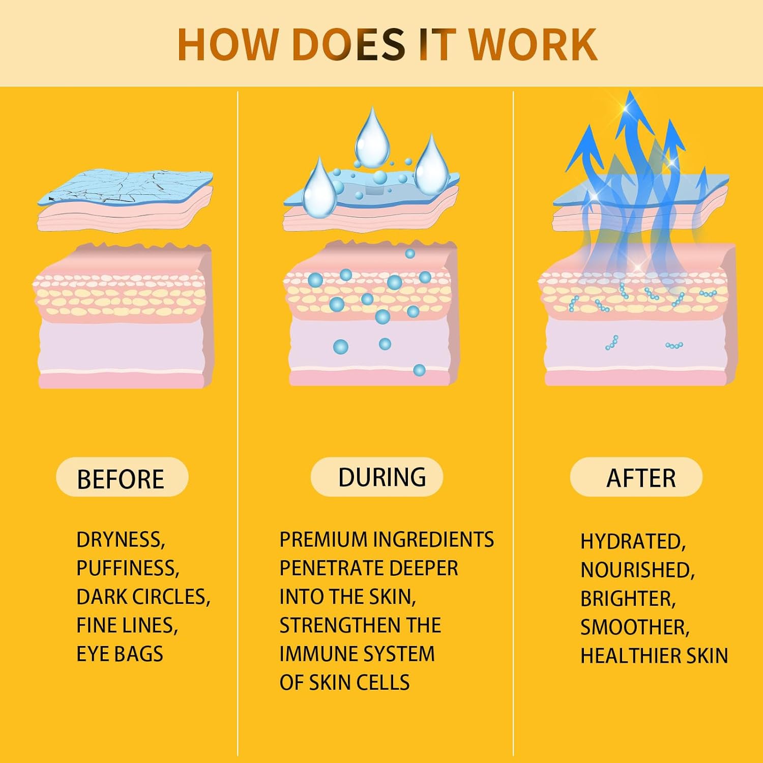 - Our Advantages: Our premium 24K gold eye masks are developed by a Korean cosmetic laboratory. They contain a blend of natural ingredients, including 24K Nano Gold, Collagen, Sodium Hyaluronate, Gelidiella acerosa extract, Avocado oil, Camellia sinensis leaf extract, Vitamin C, Retinol, Vitamin E, and Rose essence. These ingredients are highly effective for eye bag remover, gold eye patches for puffy eyes, eye mask for puffiness, eye mask skincare and under eye bags treatment for women and men.