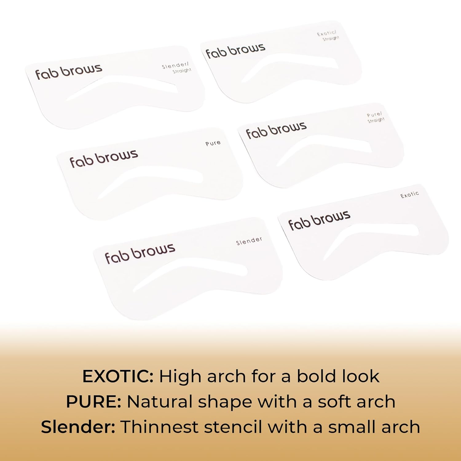 - Instant Gorgeous Brows - Get beautiful, symmetrical brows in seconds! Our Fab Brows Lux Eyebrow Stencils are made with a thinner design than our original brow stencils for greater precision and more defined and detailed shaping.