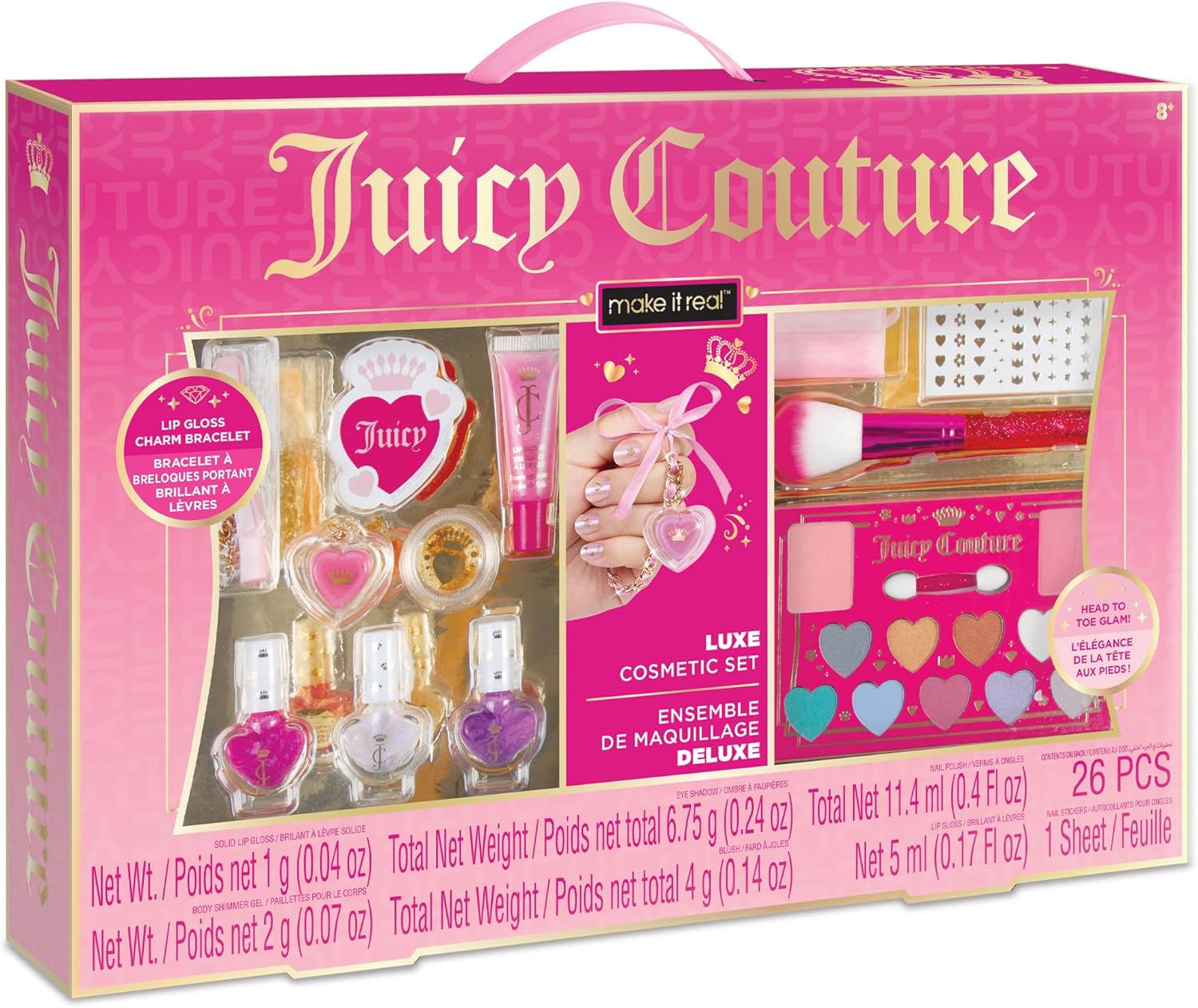 Make It Real: Juicy Couture Luxe Cosmetic Set - Lip Gloss Charm Bracelet, Nail Polish, Eyeshadow, Head to Toe Glam, Makeup Kit, Girls & Kids Ages 8+