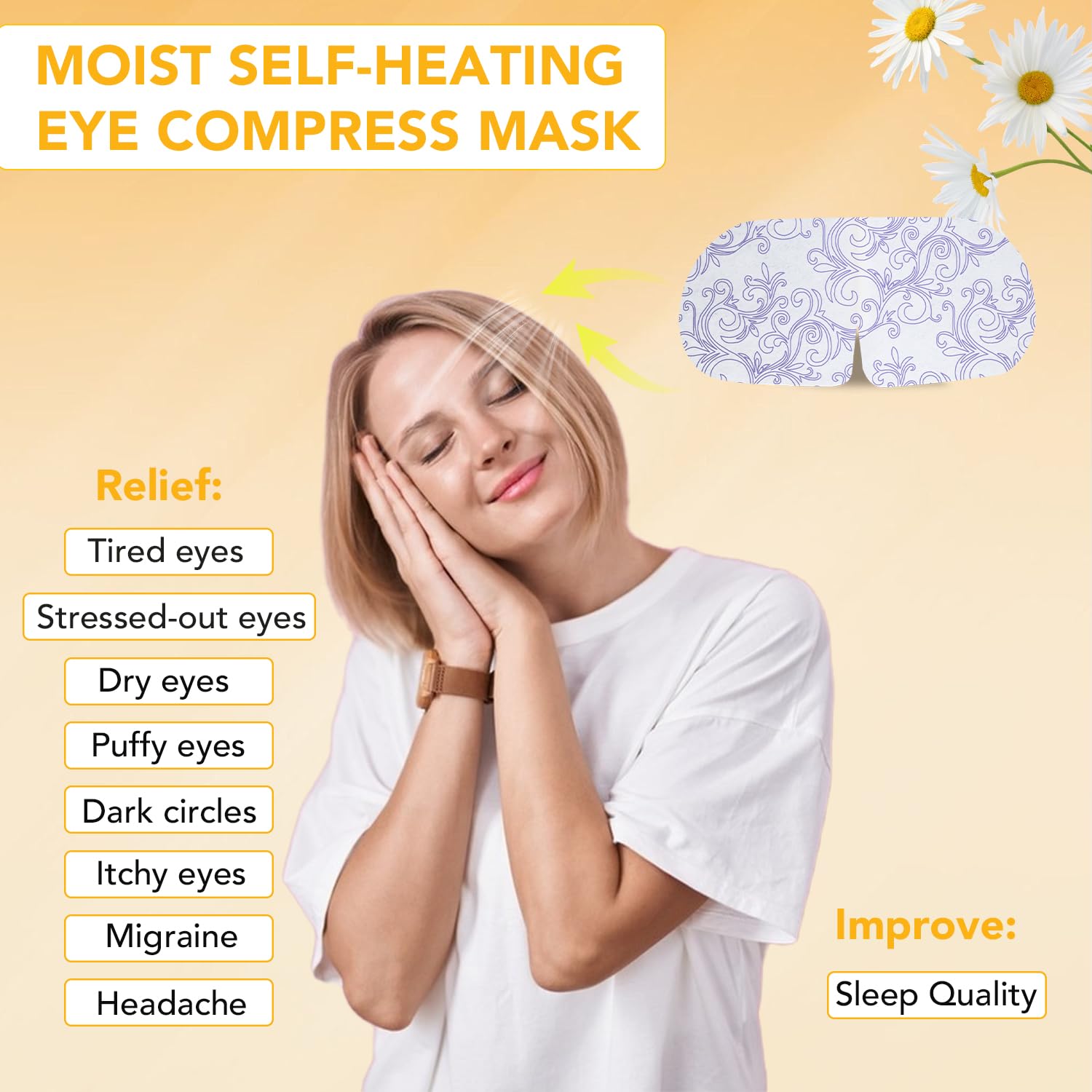 - 【Upgrade Steam Eye Mask】The self heating steam eye mask is made of high-quality cotton non-woven fabric, which is comfortable and skin friendly, fits the eyes well, and effectively reduces problems such as dryness, swelling, and dark circles under the eyes. Steam eye masks can release warm steam, promote blood circulation in the eyes, quickly relax eye muscles, and make the eyes glow naturally.