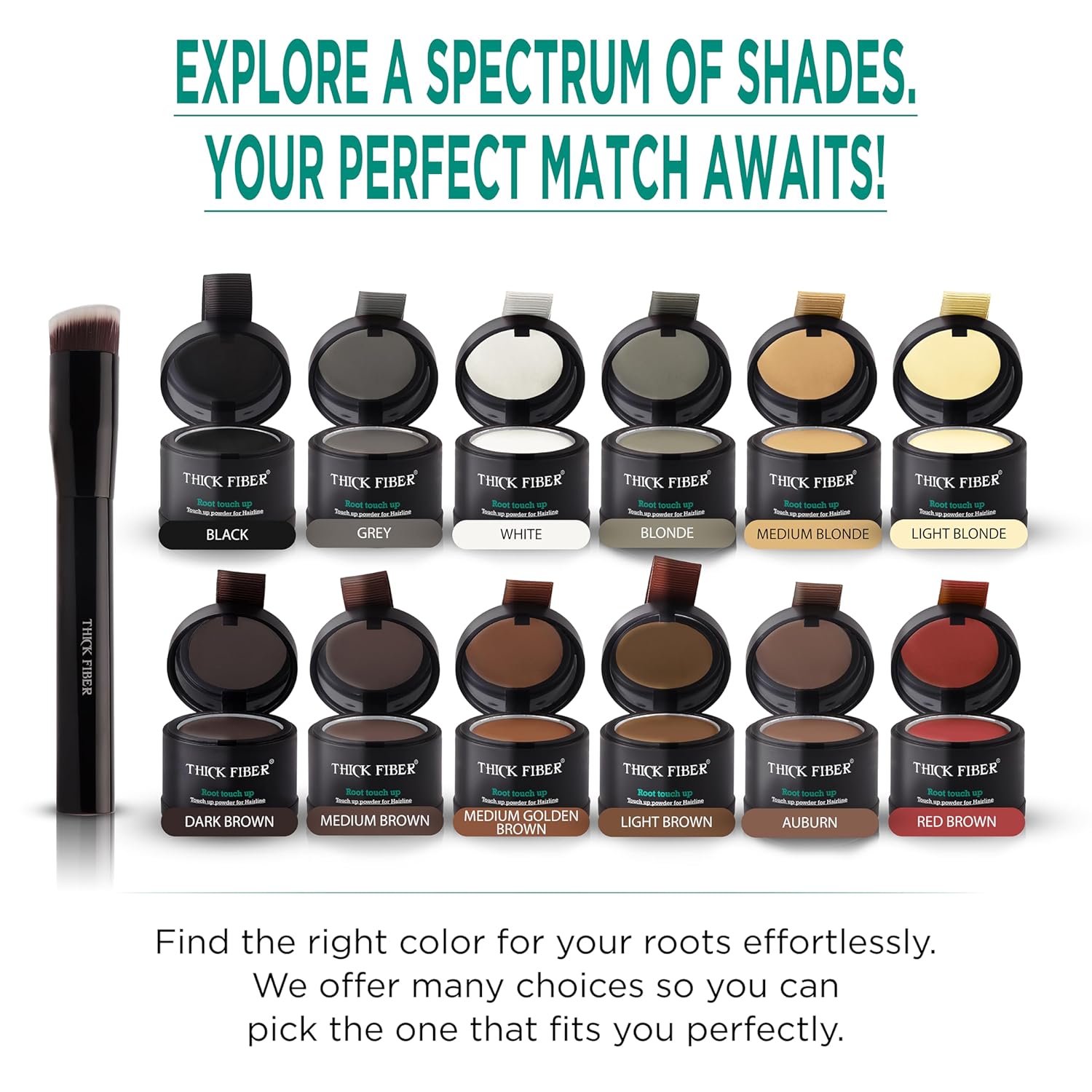 - INSTANTLY CONCEALS THIN HAIRLINE AND COVERS GRAY ROOTS: The THICK FIBER Root Touch Up Powder is your secret weapon for effortlessly concealing thin hairlines and those unwelcome gray roots. With a few quick strokes, watch as the hair concealer powder works its magic, providing you with instant coverage that camouflages imperfections and boosts your hairline's fullness.