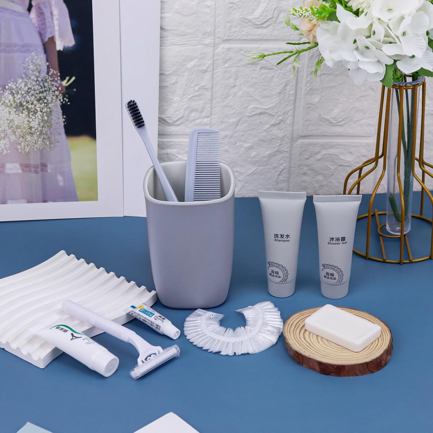 - More sets to match: our hygiene travel kit comes in a pack of 25 sets. Each travel size hygiene products bulk set consists of a Toothbrush, toothpaste, shaver, Shaving cream, comb, bath gel, shampoo, soap and bath cap. 9 items in a set. personal care travel size toiletries make it even more comprehensive, convenient and comfortable to use.