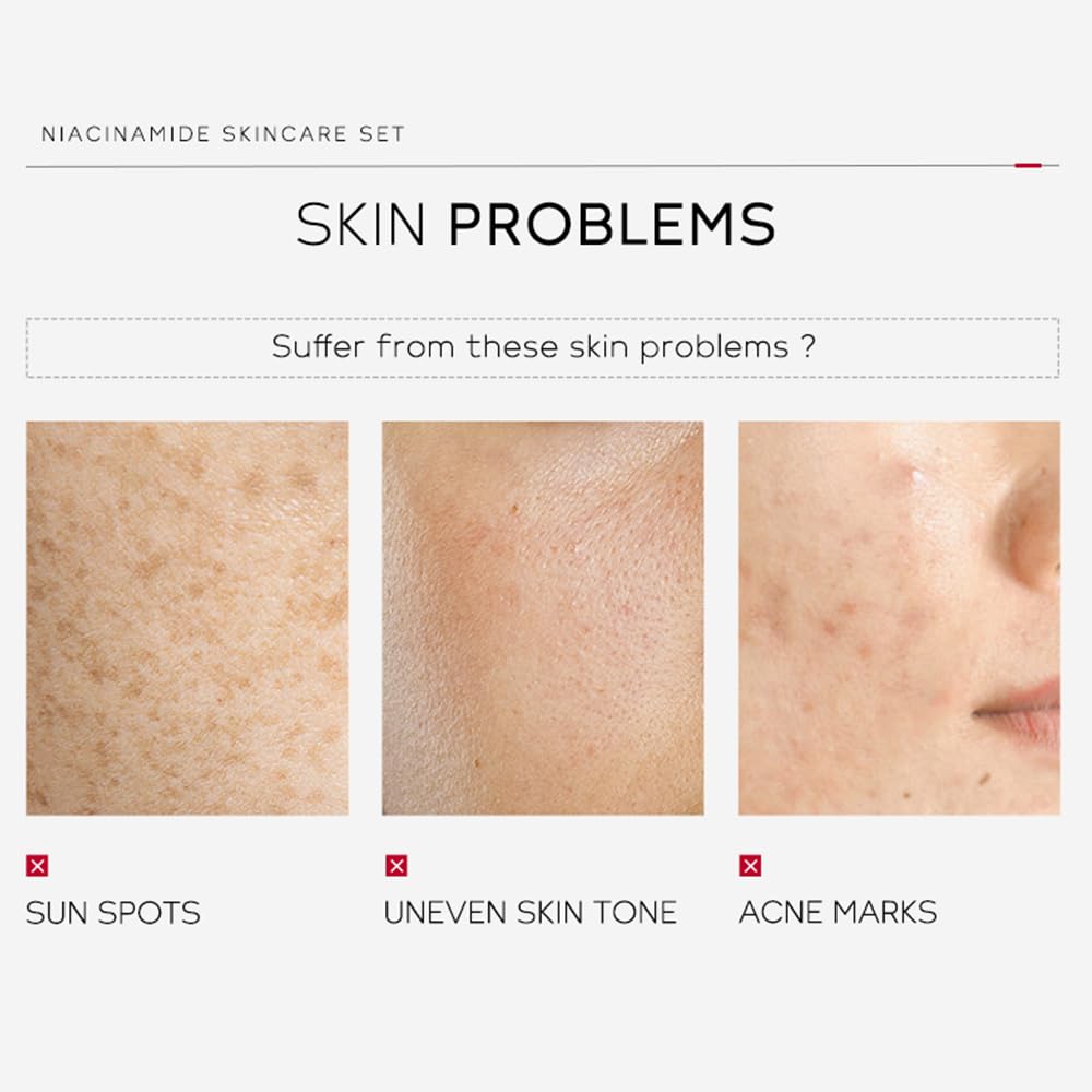 - Rich in Niacinamide: Regularly use the complete set to even skin tone, improve texture, and reduce fine lines for a visibly smoother and more refined complexion