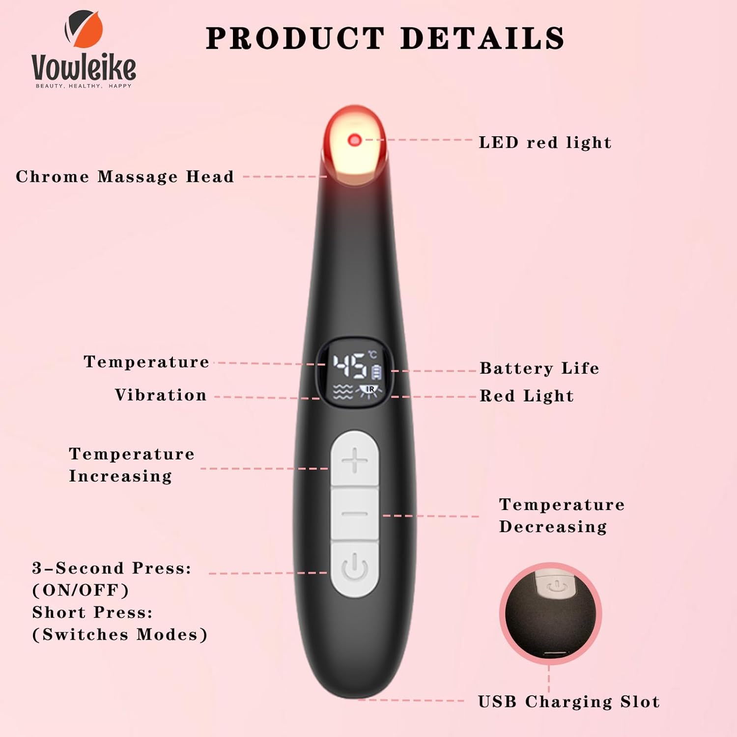 - 【All-in-One Eye & Face Device】Vowleike versatile eye & face lift wand is designed for multiple skincare concerns. It can be used on both the face and eye area, making it a perfect facial wand for a comprehensive skincare routine.