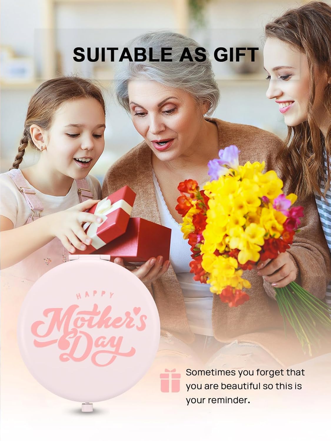 Compact Mirror for Purse, Double-Sided 1X/2X Magnifying Metal Pocket Makeup Mirrors(Round,Pink Marshmallow)