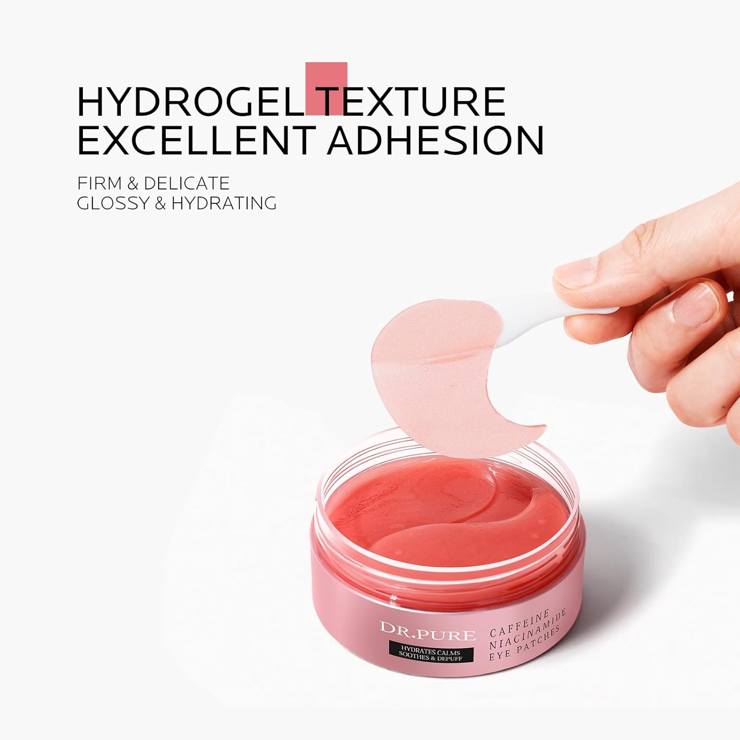 Dr. Pure Under Eye Patches for Puffiness: Caffeine Eye Mask Soothe Fine Lines Wrinkles with Niacinamide Hyaluronic Acid - Reduce Dark Circles Eye Gel Pad (30 Pairs)