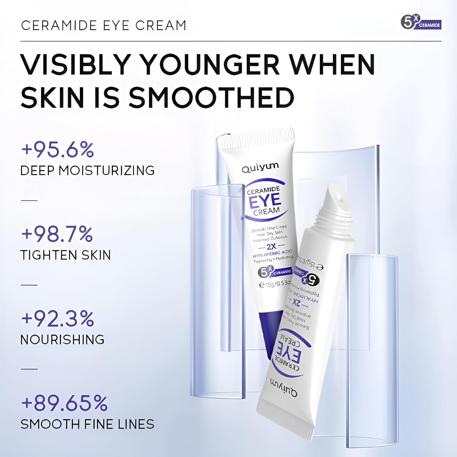 - 【Eye Wrinkle Care】Ceramide eye cream is carefully formulated with 5 types of ceramides, combined with dual hyaluronic acid and squalane. With its lightweight and easily absorbed texture, it deeply moisturizes and nourishes the skin, not only penetrating deep into the skin but also effectively smoothing out fine lines caused by sun exposure, firming the skin around the eyes.